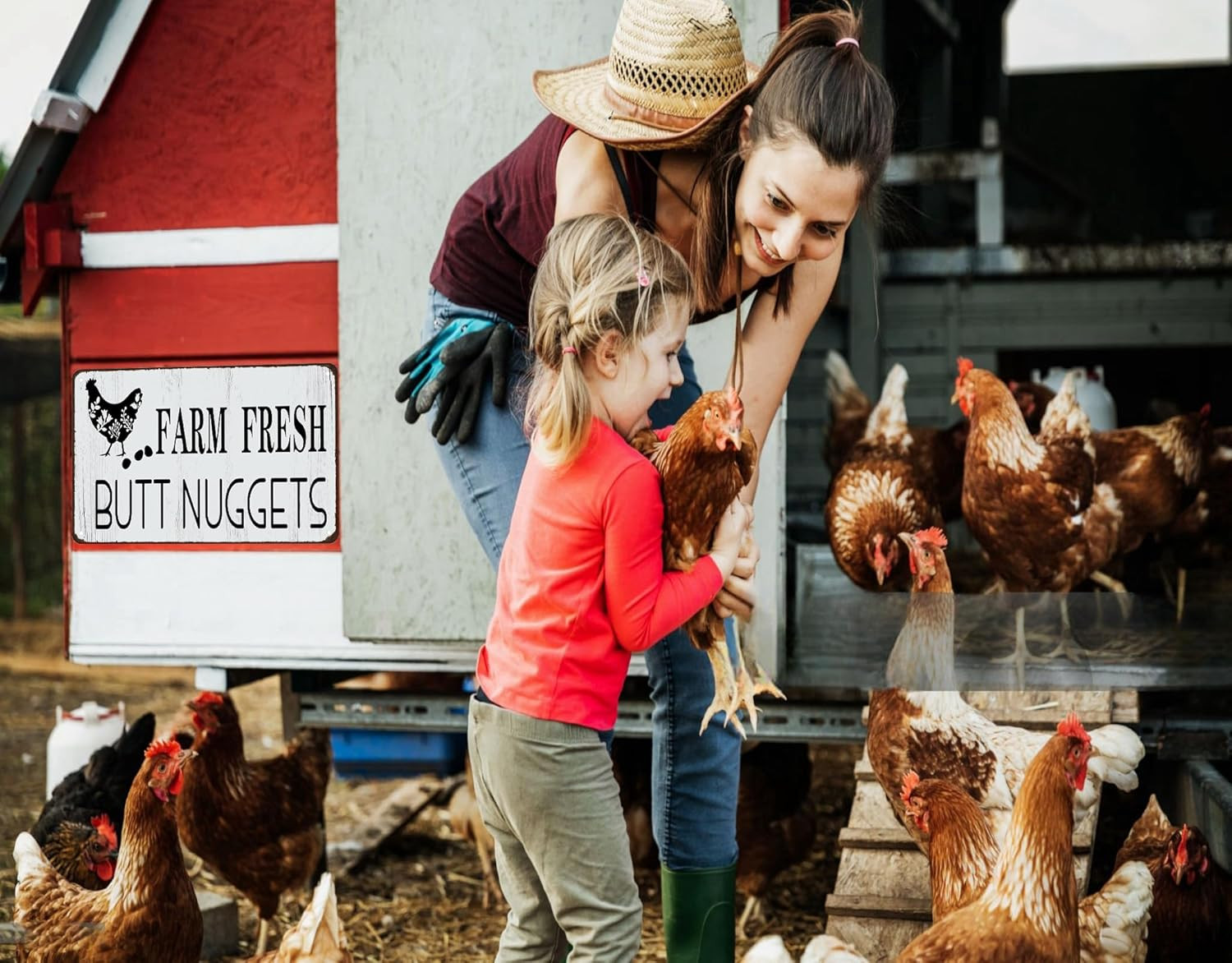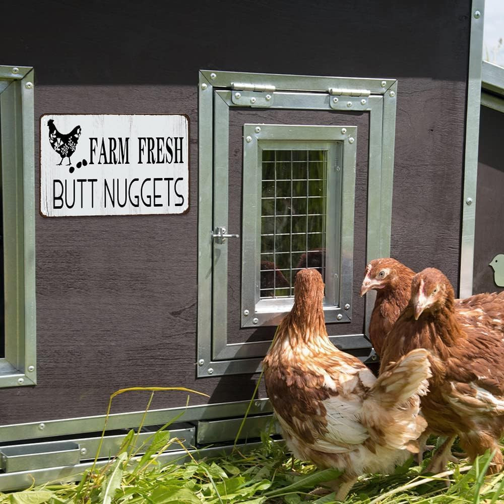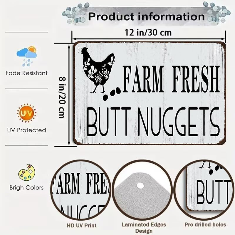 Funny Chicken Gifts Chicken Farm Fresh Butt Nuggets Tin Sign for Home Farm Chick