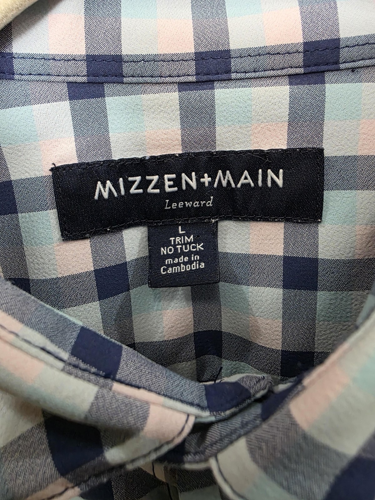 как выглядит Mizzen Main Leeward Dress Shirt Mens Large Blue Gingham Trim Non Iron Stretch фото