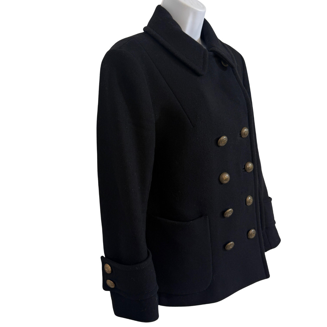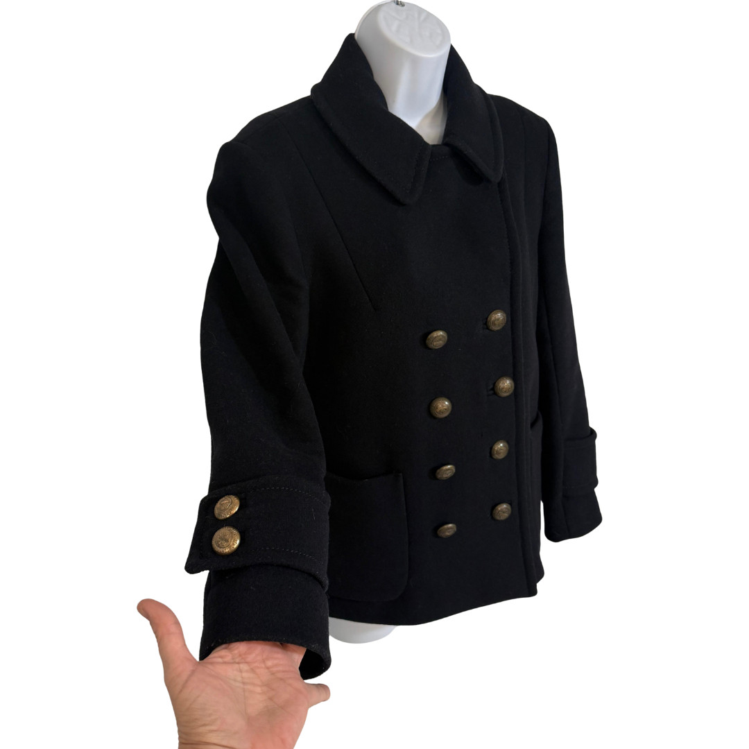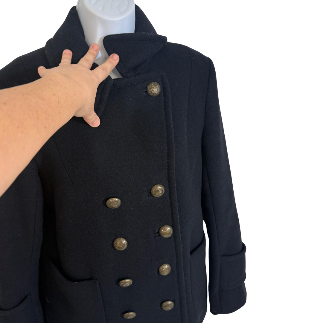 Vintage Y2K French Connection Military Officer Peacoat Wool Black Gold Button 8