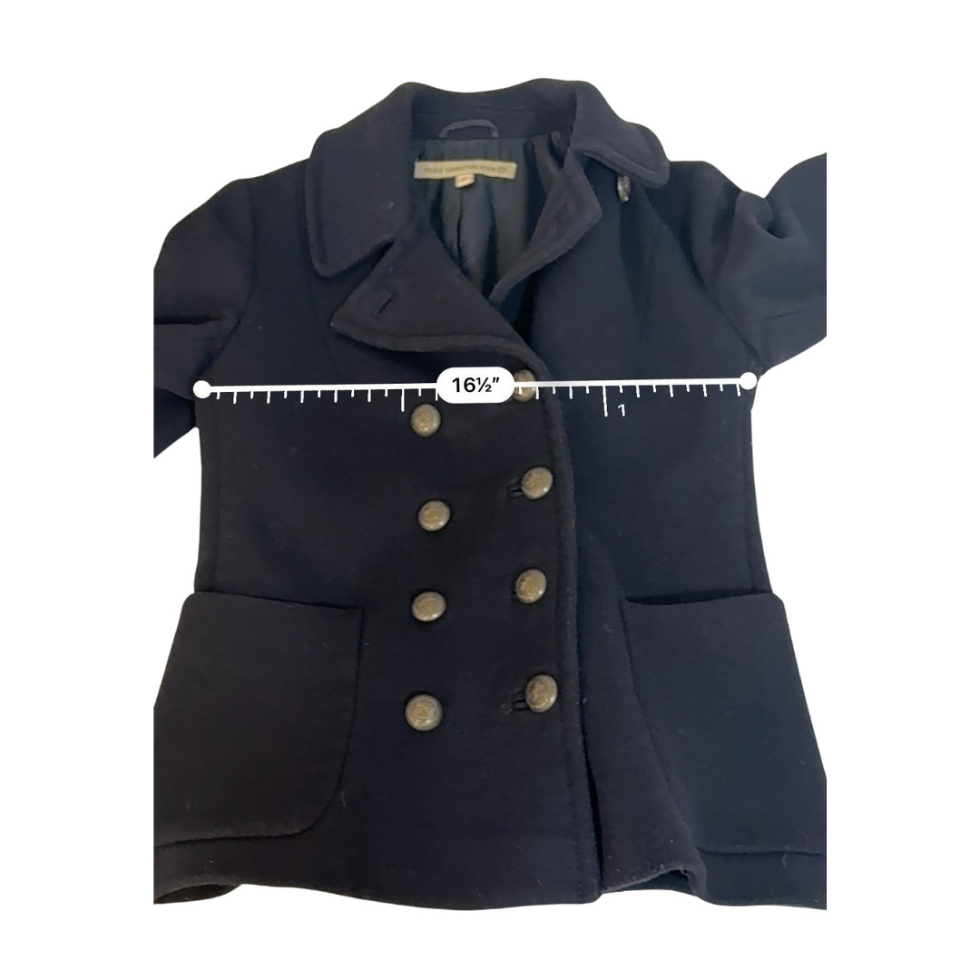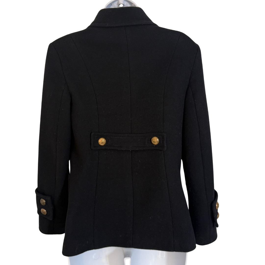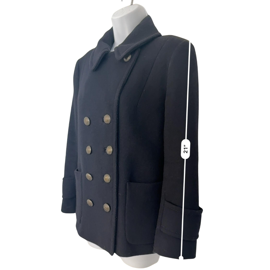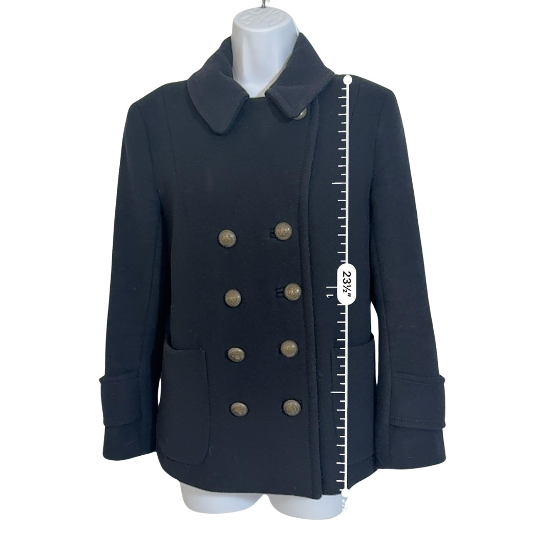 Vintage Y2K French Connection Military Officer Peacoat Wool Black Gold Button 8