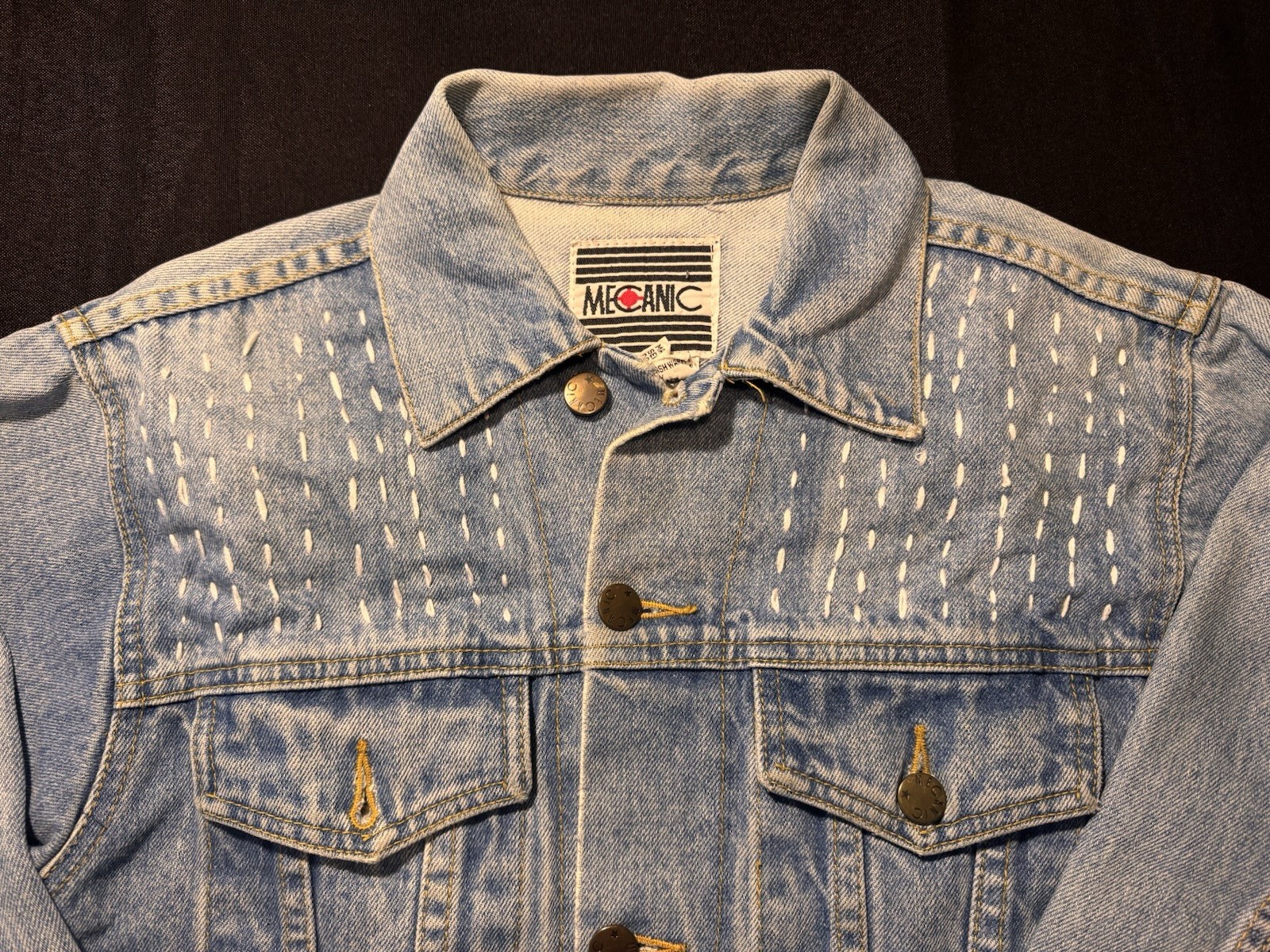 Vintage Denim Jacket Medium Hand Stitched Embroidered Custom One of One