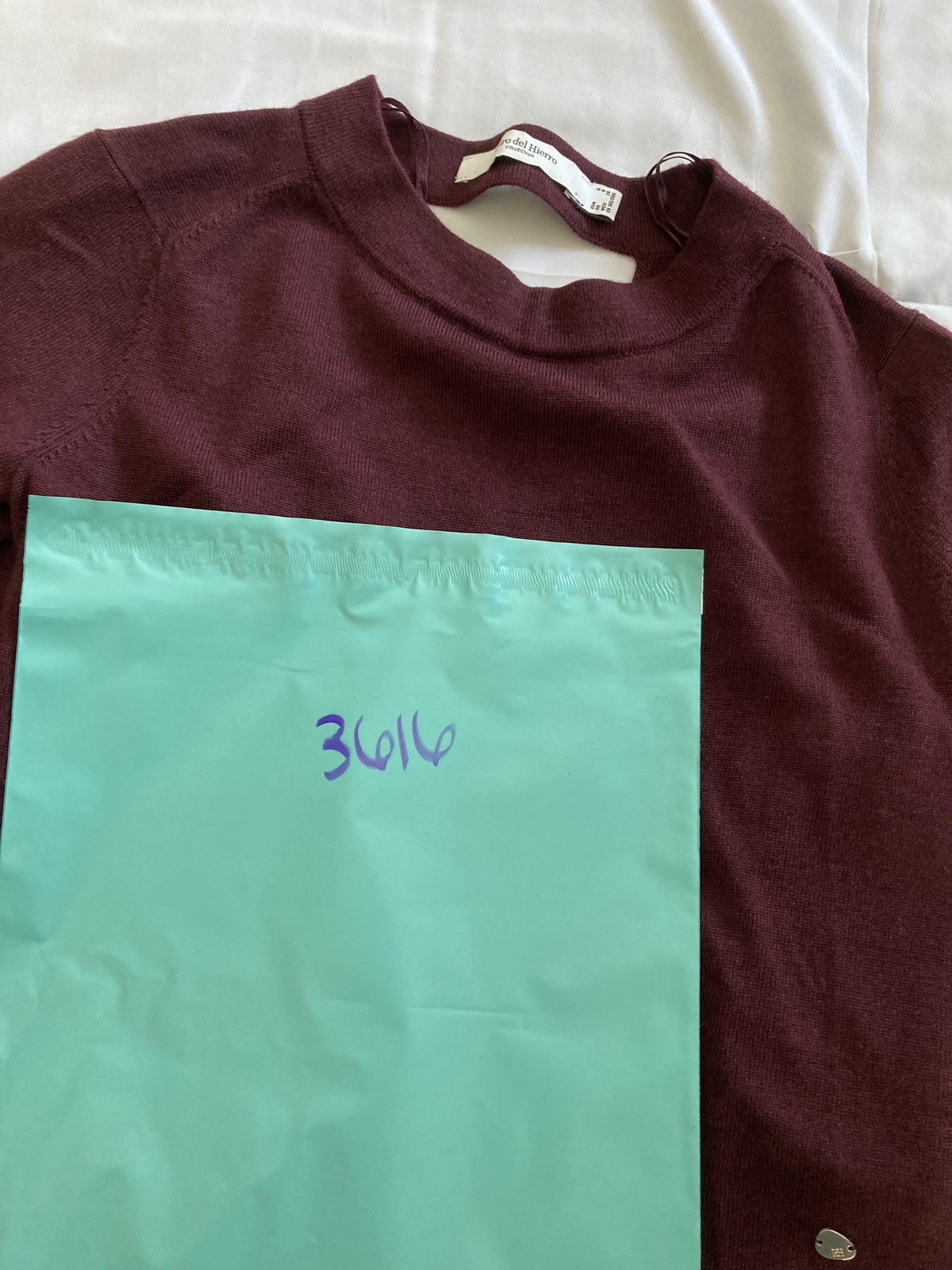 как выглядит Pedro Del Hierro Sweater Women S Wine 100 Wool Crew Neck Knit Back Cutout Logo фото