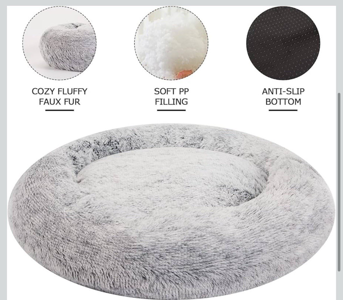 Calming Donut Dog Bed 36 Round Fluffy Anti-Anxiety Plush Machine Washable Bed