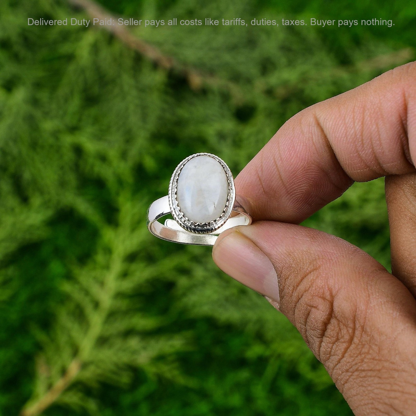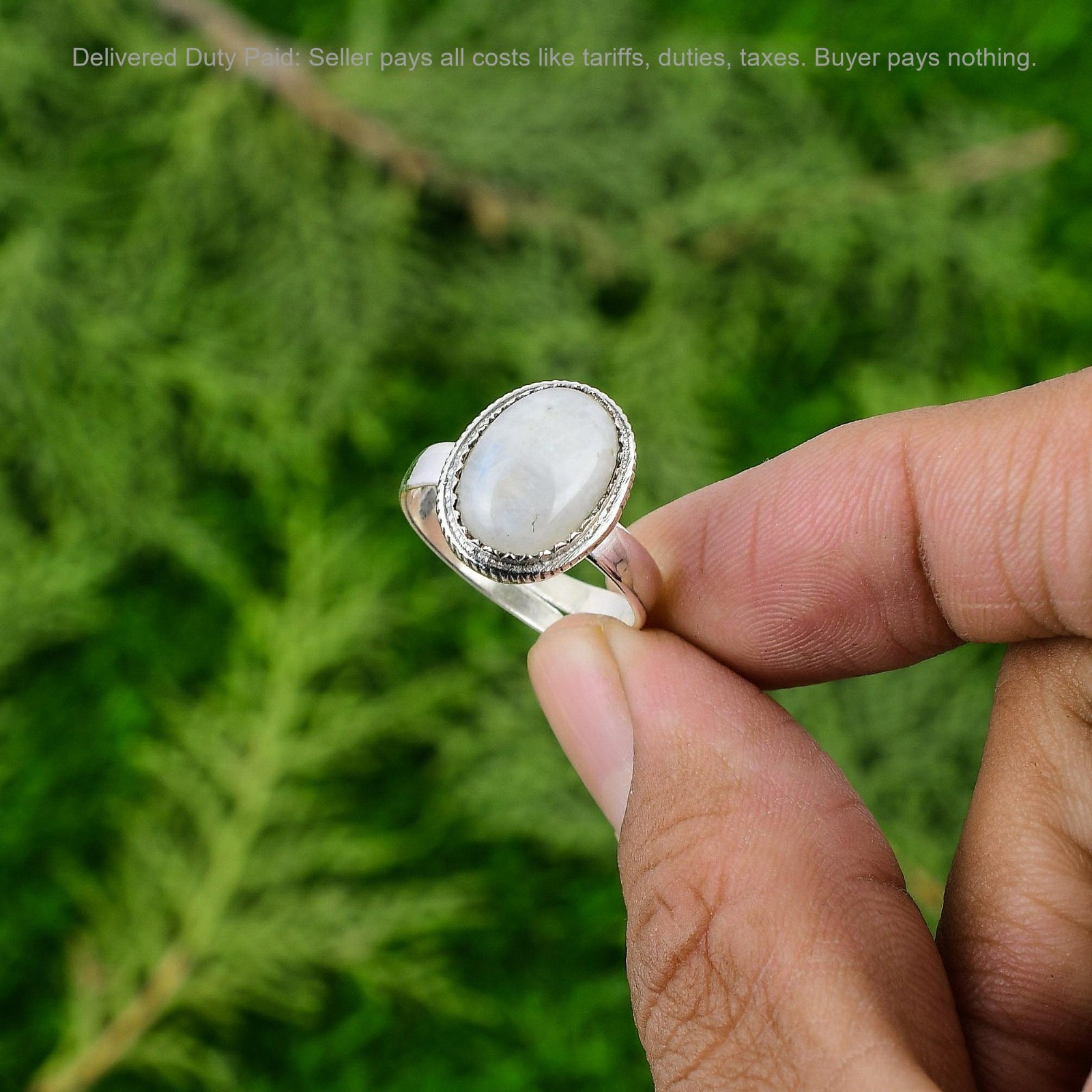 Valentines Sale Rainbow Moonstone Gemstone 925 Silver Statement New Ring Jewelry