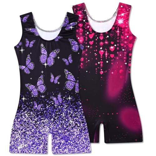 2 Packs Gymnastics Leotards for Girls Mermaid Leopard 3-4T 1 Butterfly heart