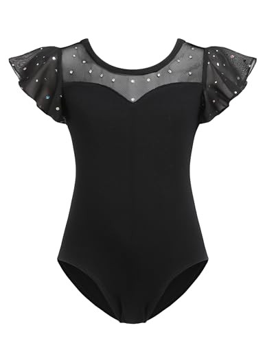 Girls Ruffle Sleeve Ballet Leotards Toddler Mesh Dance Leotard 4-5T Black