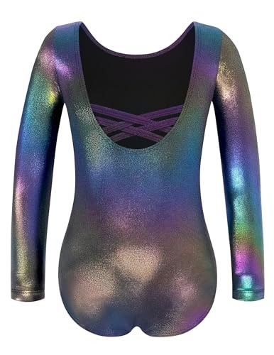 Team Basic Leotards for Girls Long Sleeve 6-7 Years Sparkle Colorful Black