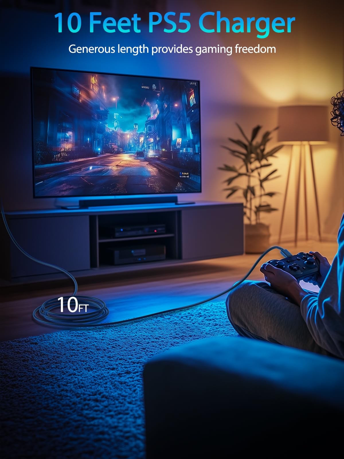 USB C Cable PS5 Controller Charger Cord for Xbox Series X/S,10ft 10ft, Black