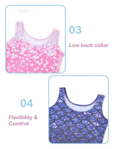 Gymnastics Leotards for Girls 2 Pack Sparkly Kids 7-8 Years Heart Mermaids