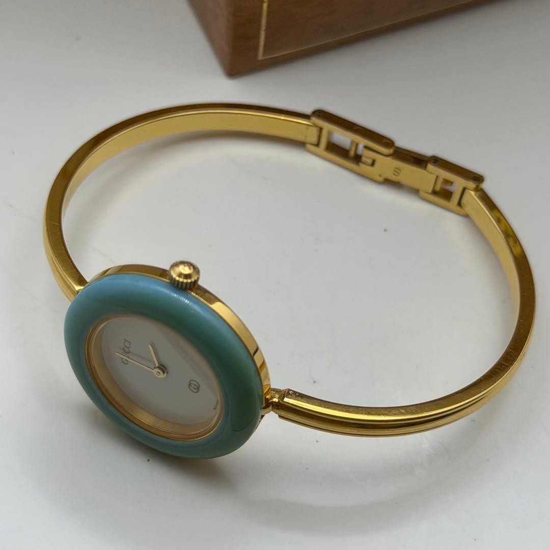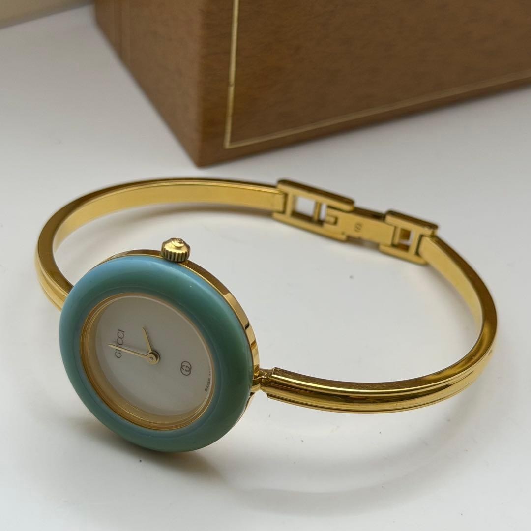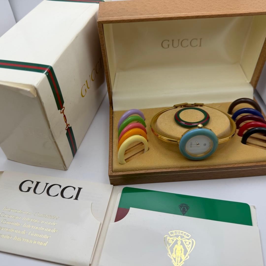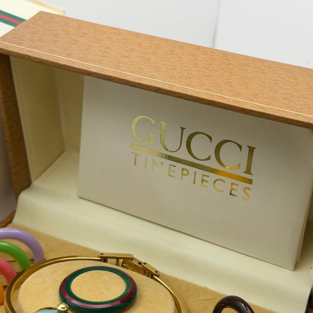как выглядит GUCCI Change Bezel 12 Colors Gold Womens Watch M Size Working Very Beautiful фото