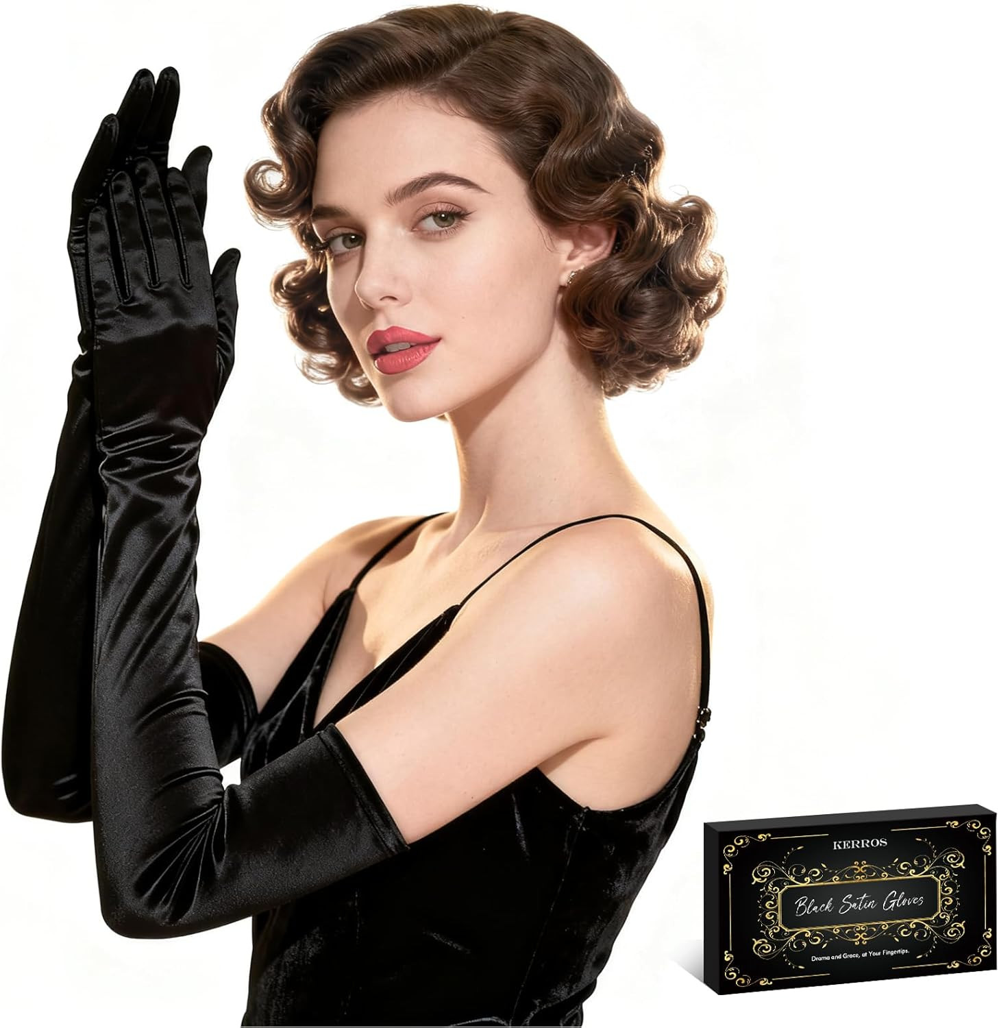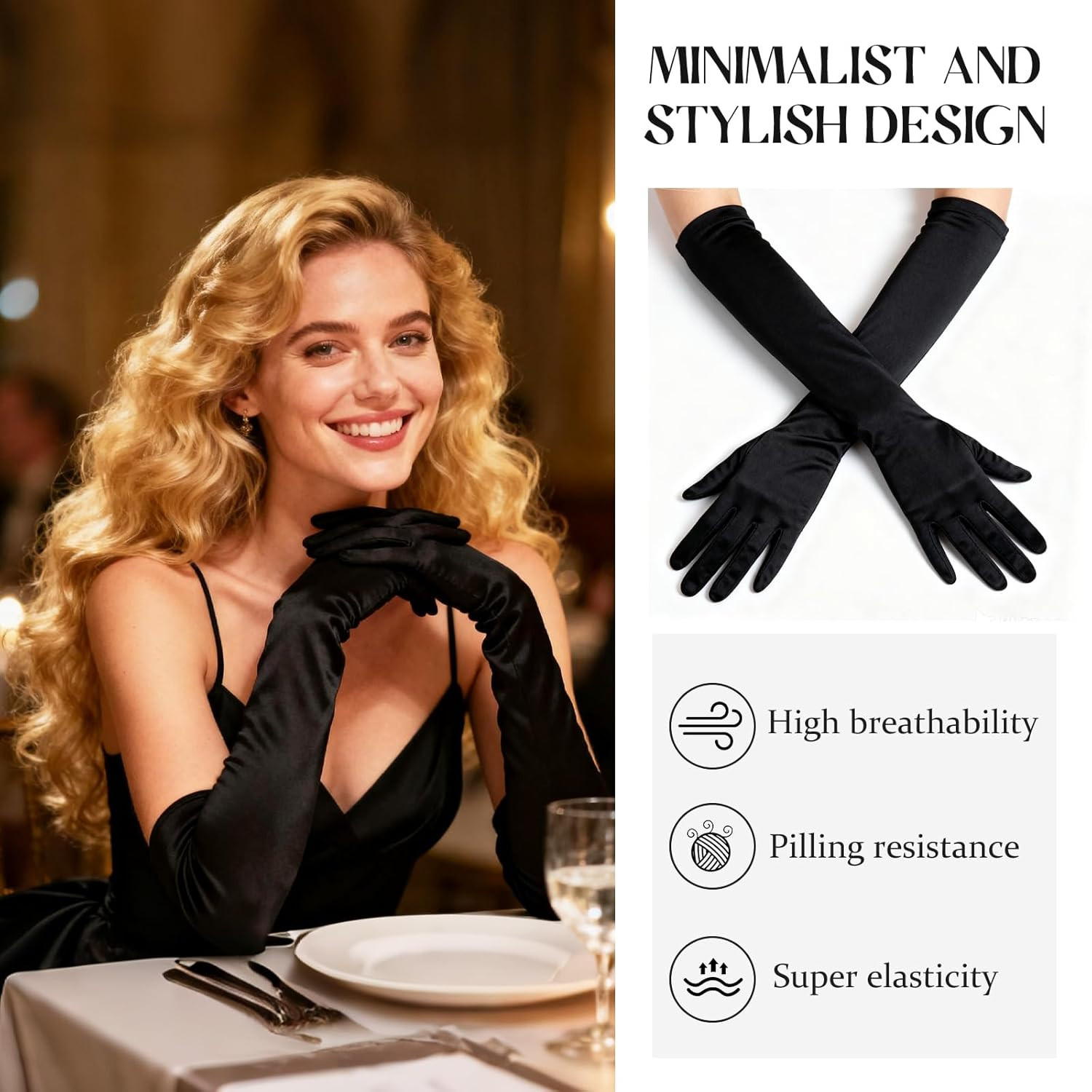 Long Black Gloves Women Formal, 1920s Black Opera Gloves Costume, Elbow Lengt...