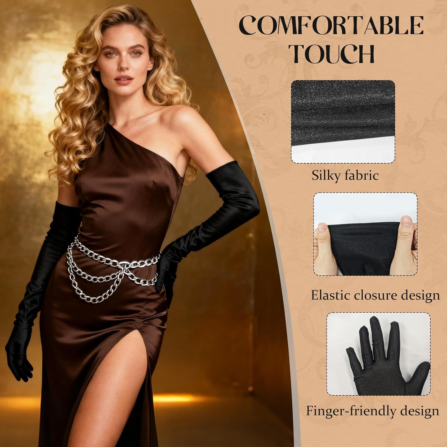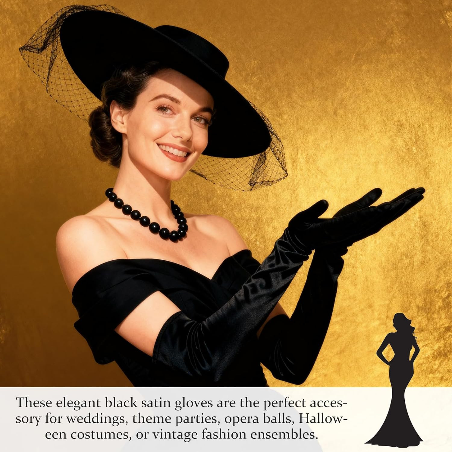 как выглядит Long Black Gloves Women Formal, 1920s Black Opera Gloves Costume, Elbow Lengt... фото