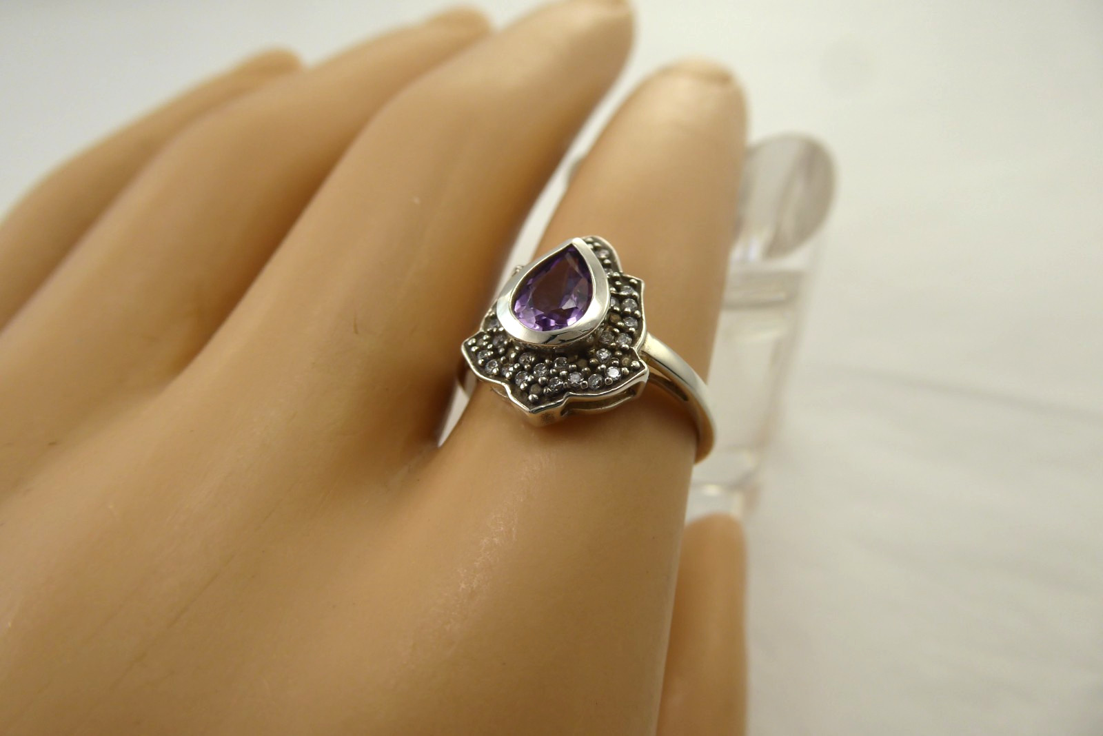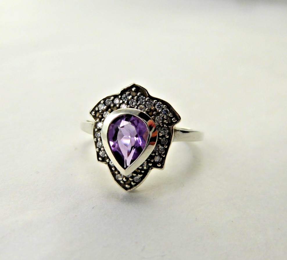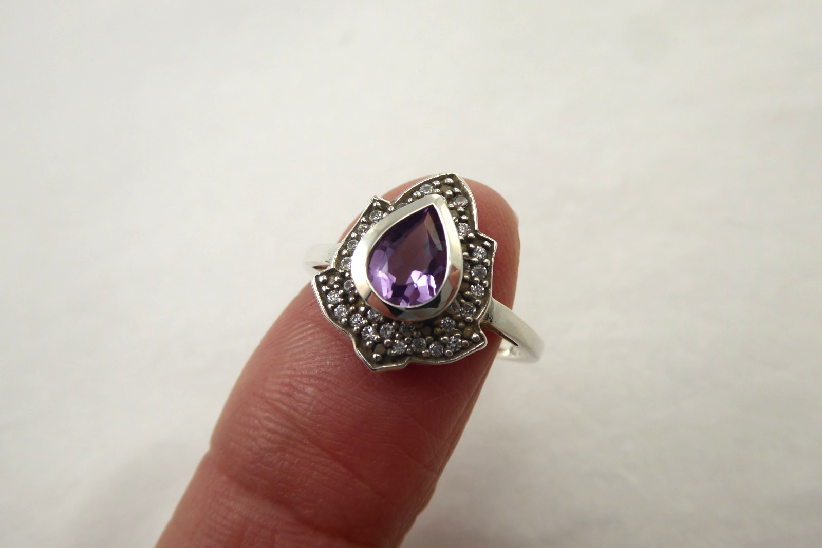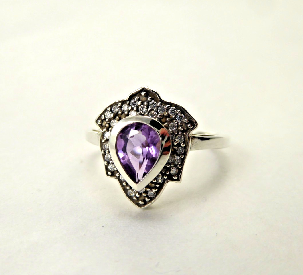 как выглядит NEW Sz 6 Sterling Silver Genuine Amethyst Pear Ring Teardrop Gemstone Solid 925 фото