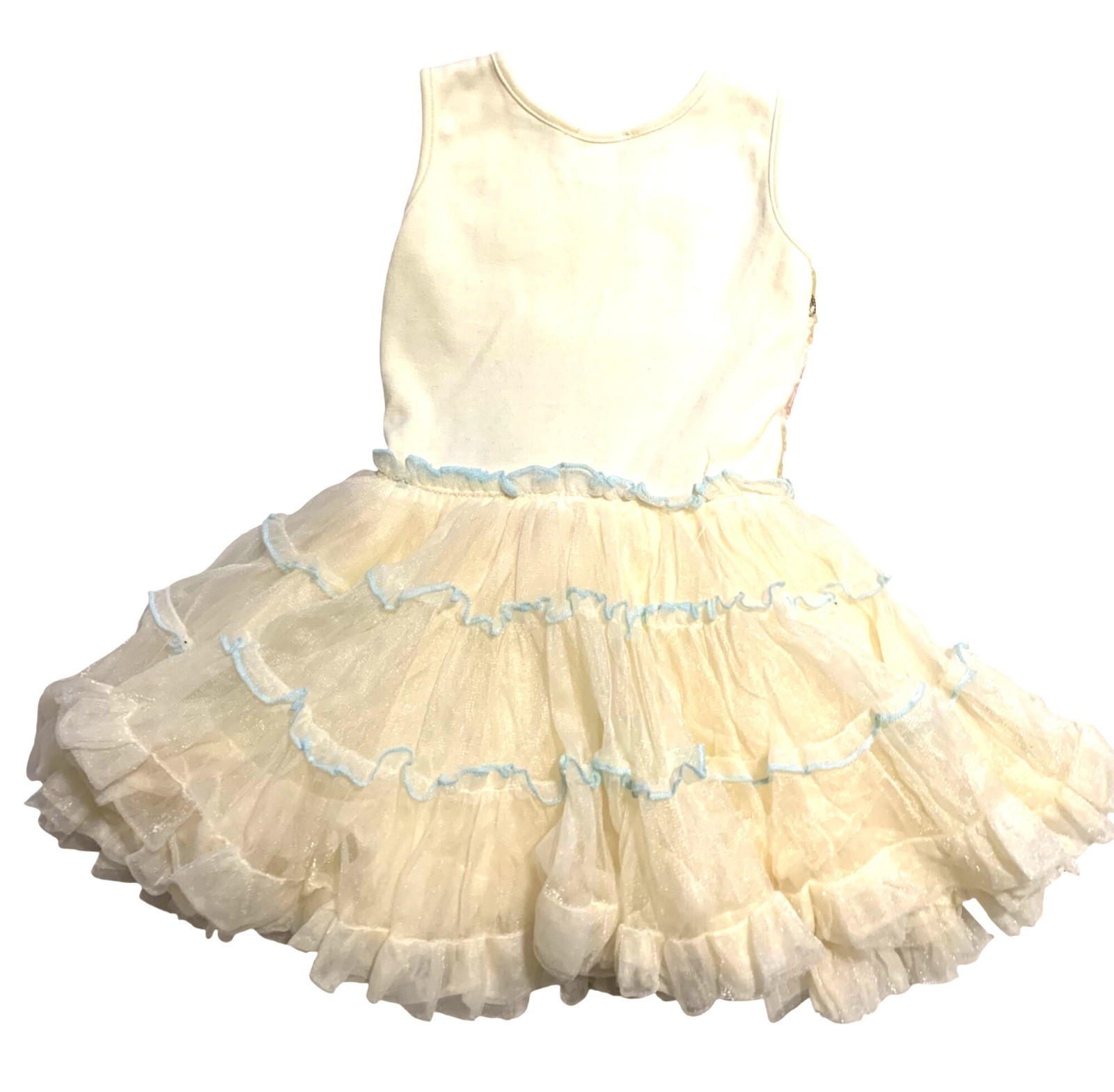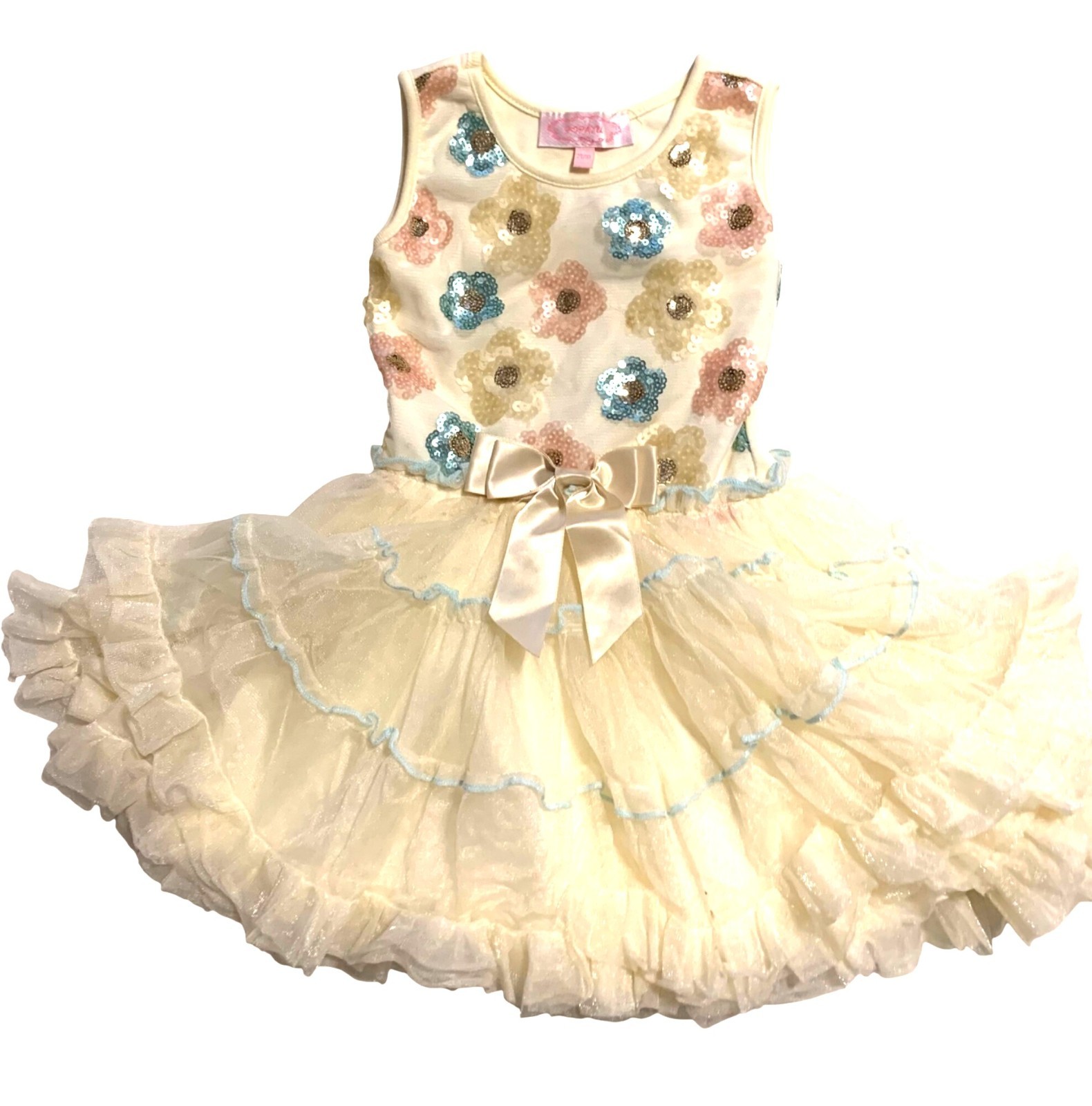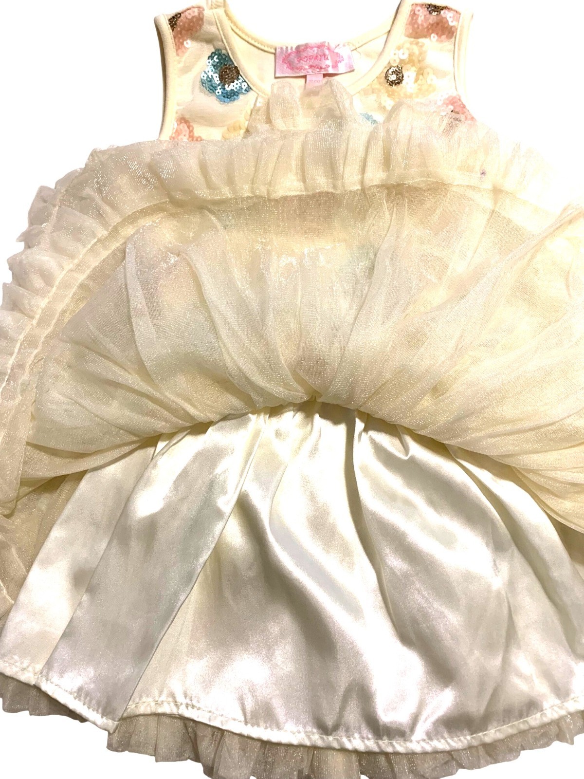Popatu Girls Sequin Floral Ivory Dress With Tulle Skirt Satin Bow Size 2T/3T