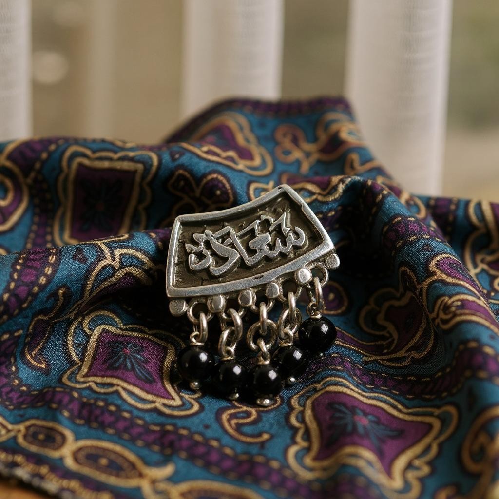 Egyptian Silver Romantic Love Islamic Jewelry Ring Arabic Calligraphy, HAPPINESS