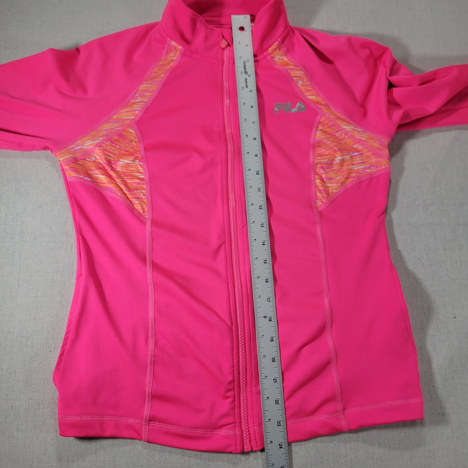 как выглядит Fila Sports Running Womens Pink/Orange Medium Full Zip Jacket Coat Thumbholes фото