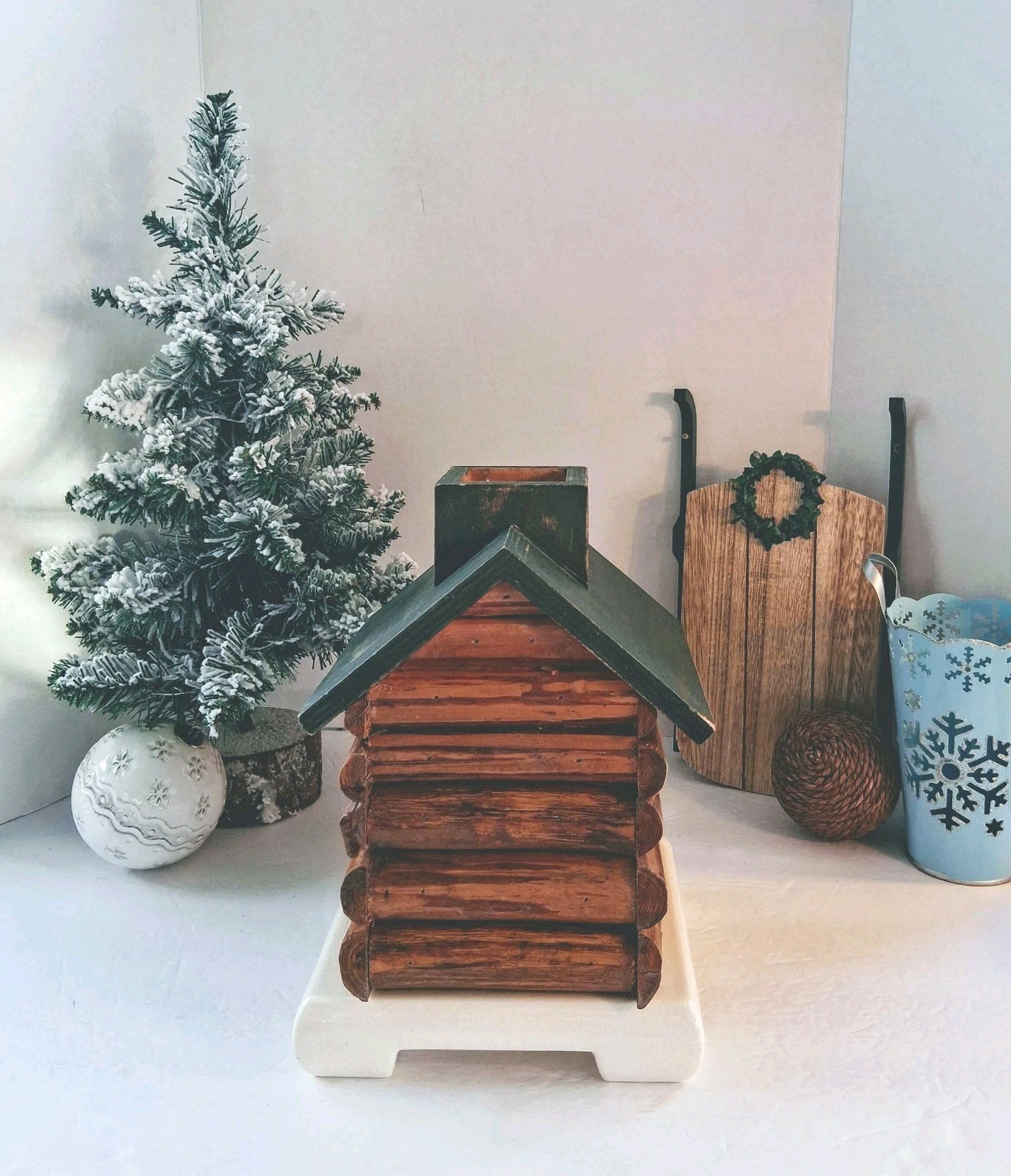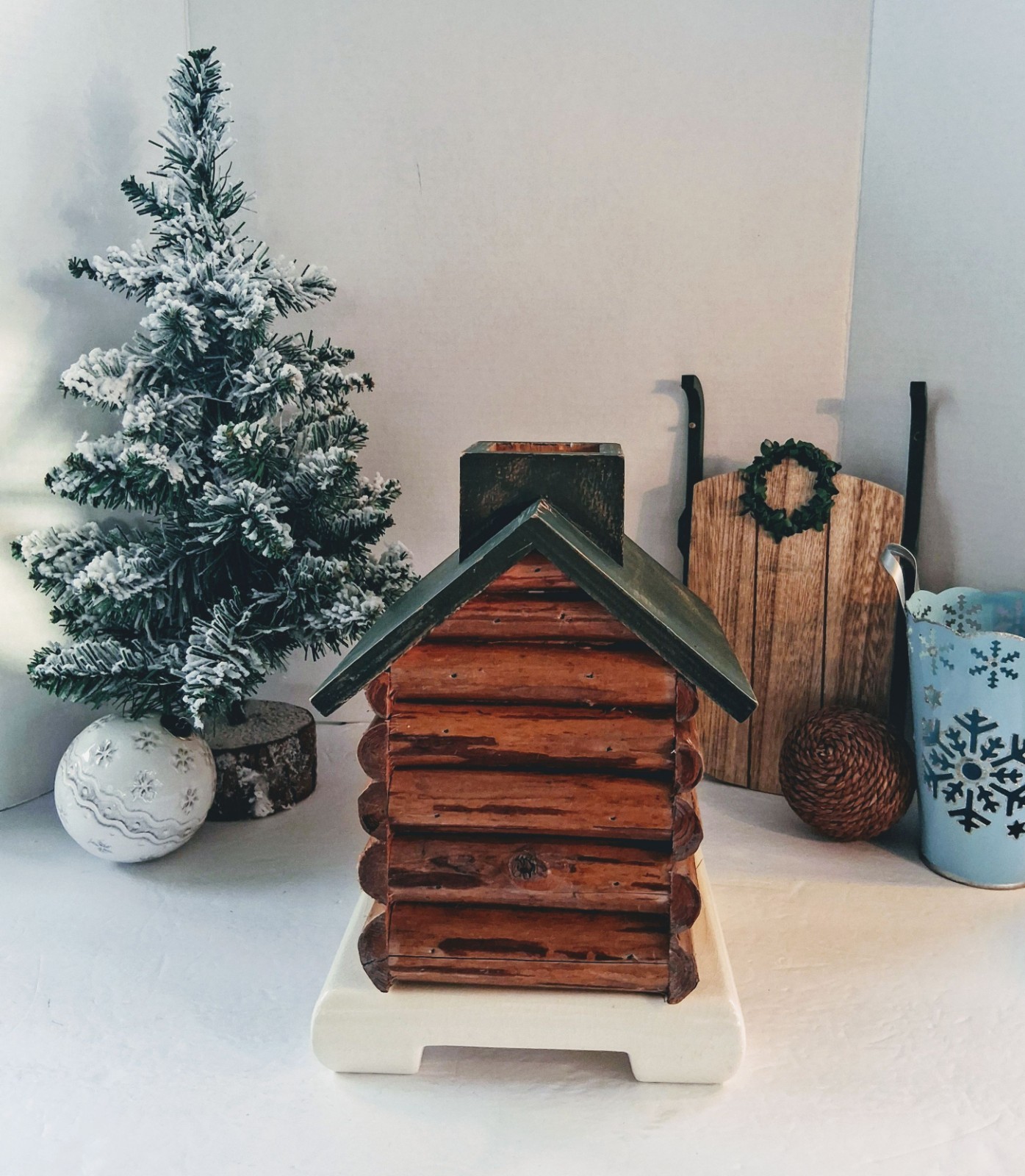 Black Forrest Brand, Log Cabin Tissue Box Cover; Handmade; Real Wood;