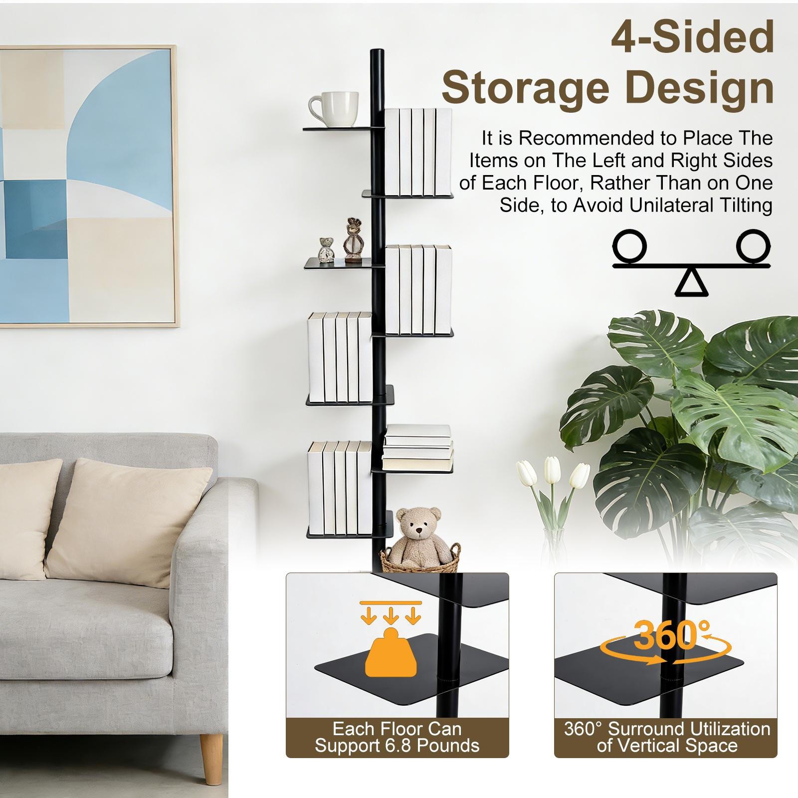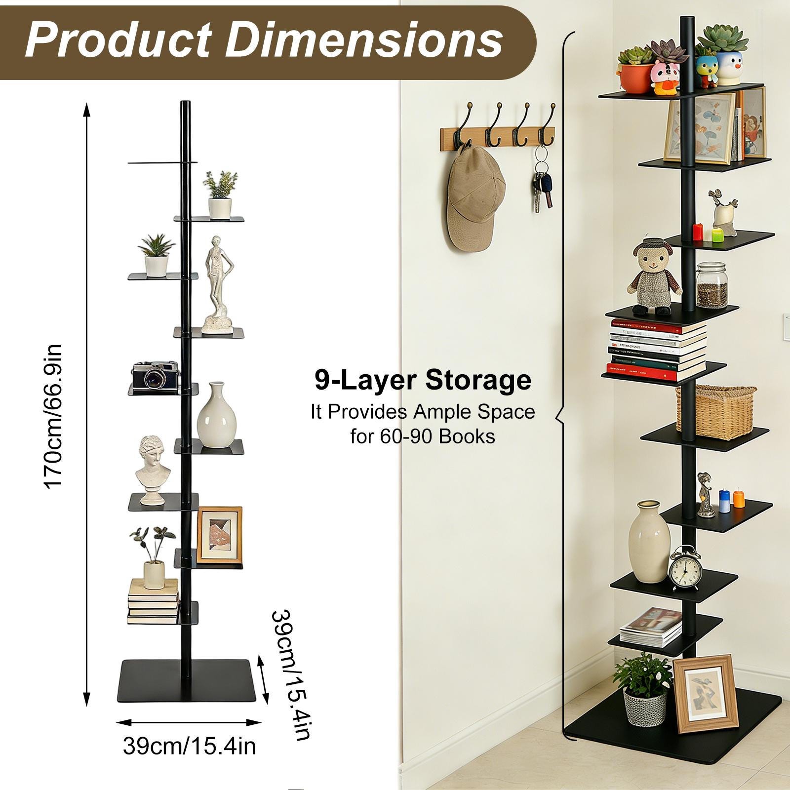 Spine Bookshelf, Vertical Spine Book Tower 9-Tier Metal Bookcase Book Organizer-