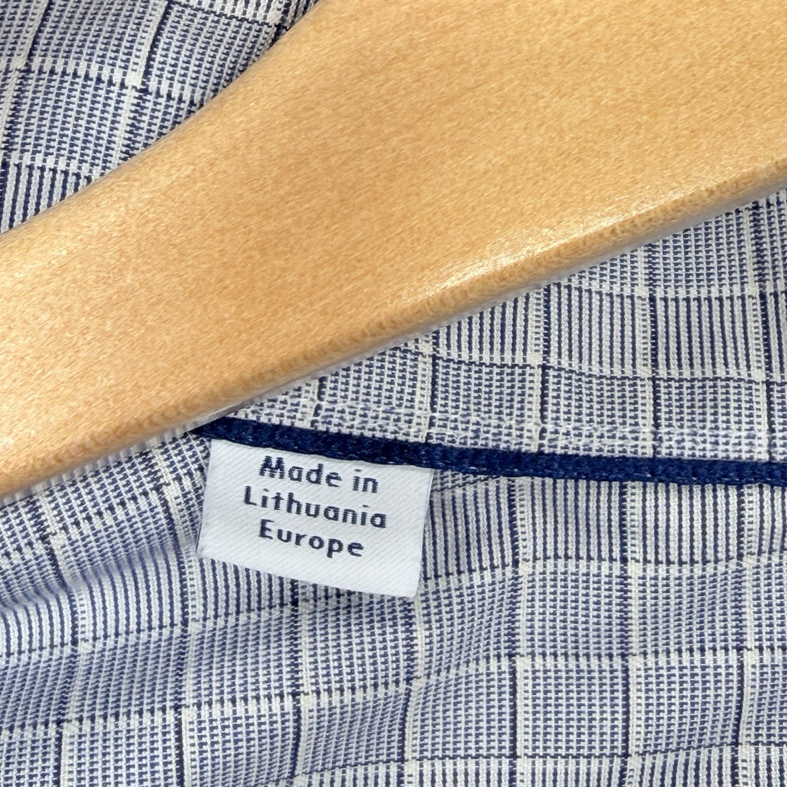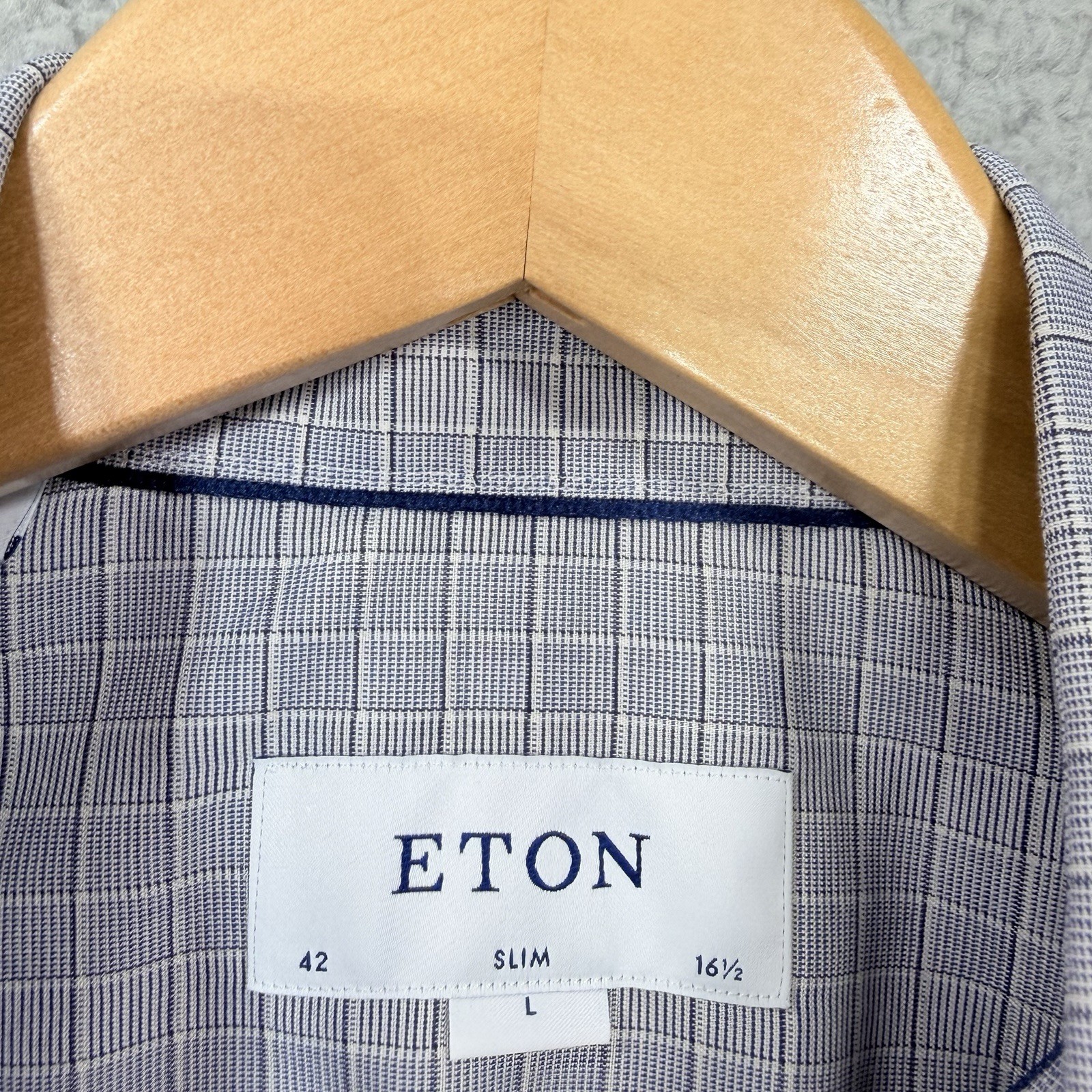 Eton Dress Shirt Mens 16.5 Slim Fit Blue Micro Check Long Sleeve Button Up