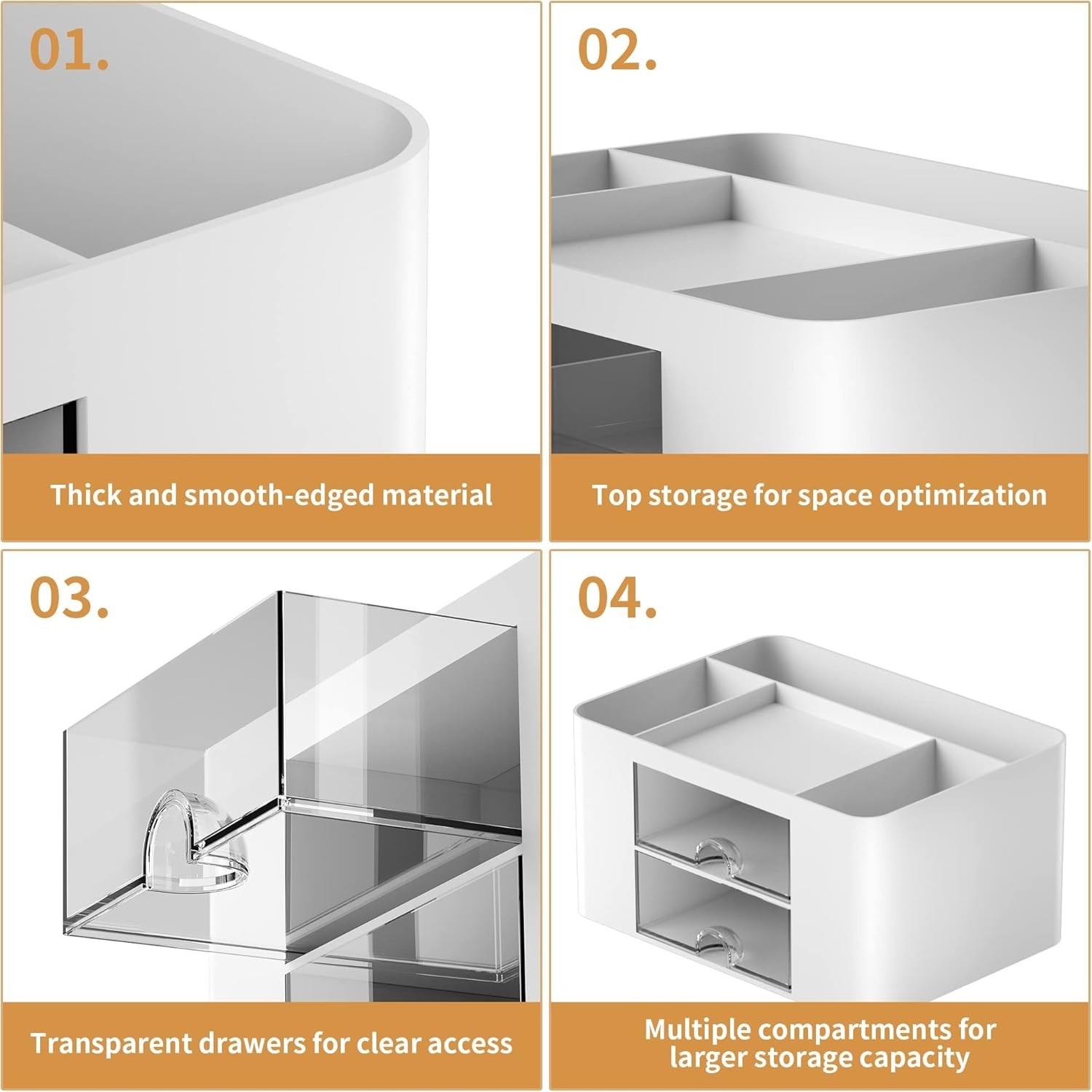 Desk Organizer Pen Holder w 2 Drawers Office Supplies Storage White