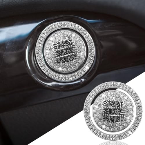 Bling Crystal Car Engine Start Ring Sticker, Sparkling Rhinestone Push White