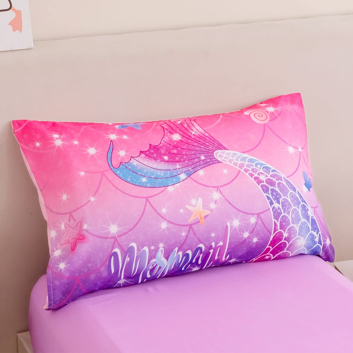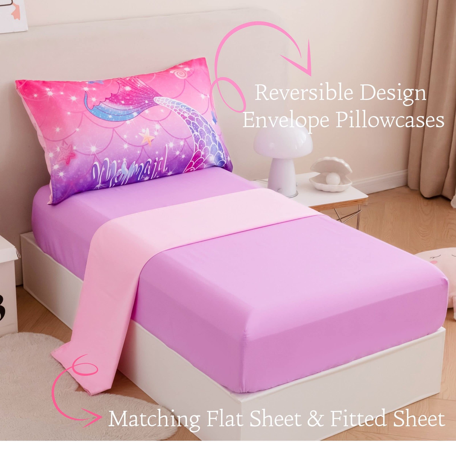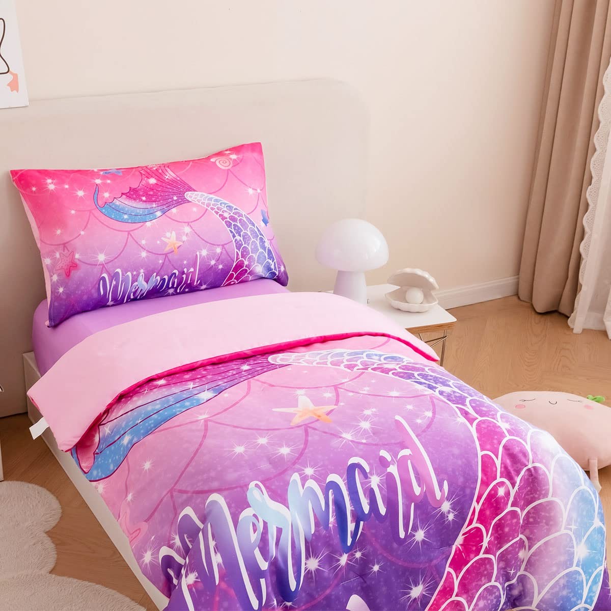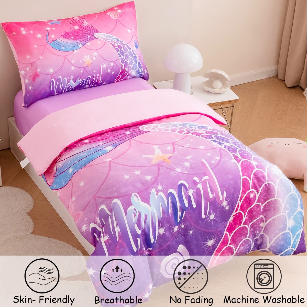 4 Pcs Toddler Bedding Set for Girls Mermaid Print Toddler Comforter Set Pink ...