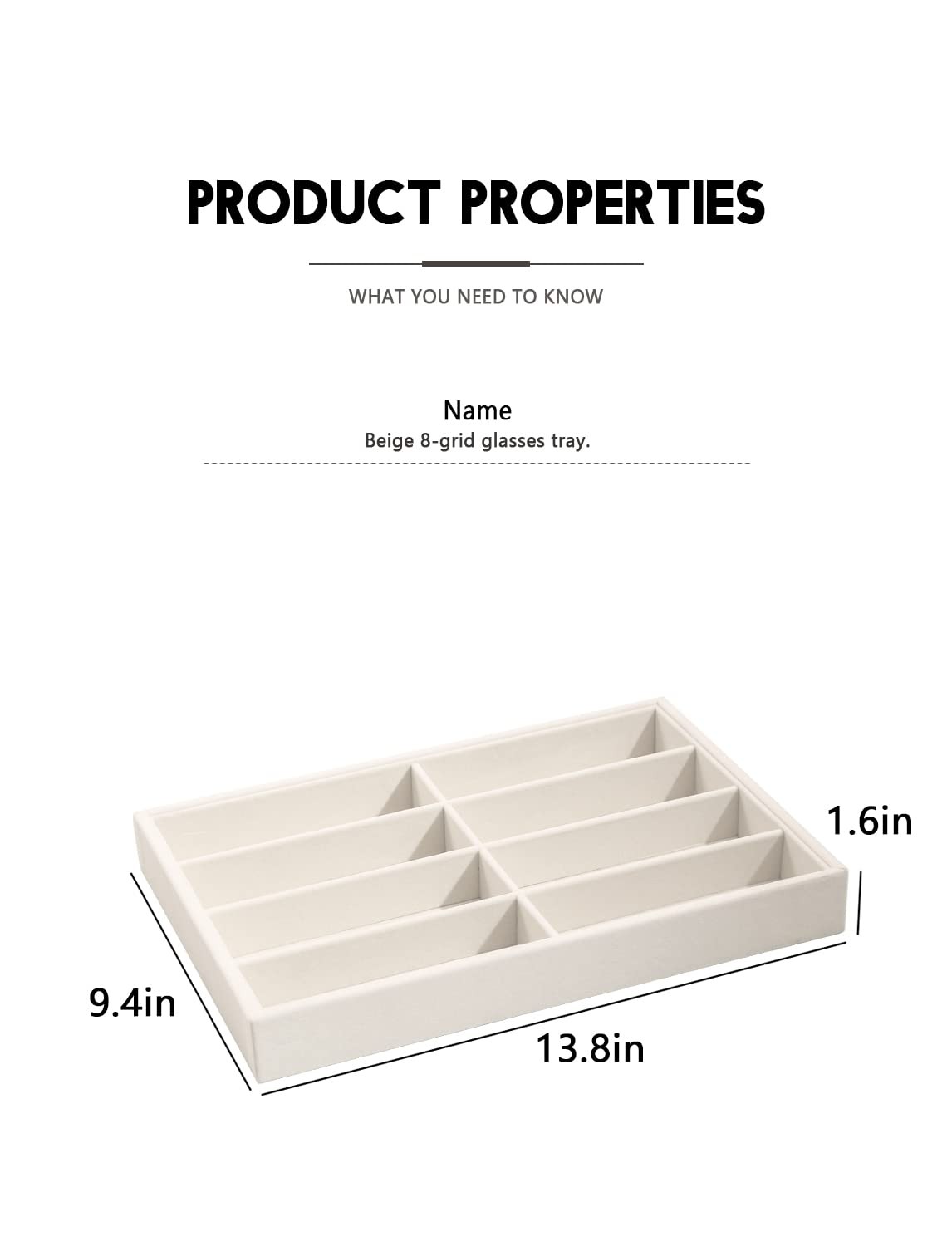 Sunglass Organizer, Beige Velvet Glasses Trays - Eyeglasses Watches Jewelry D...