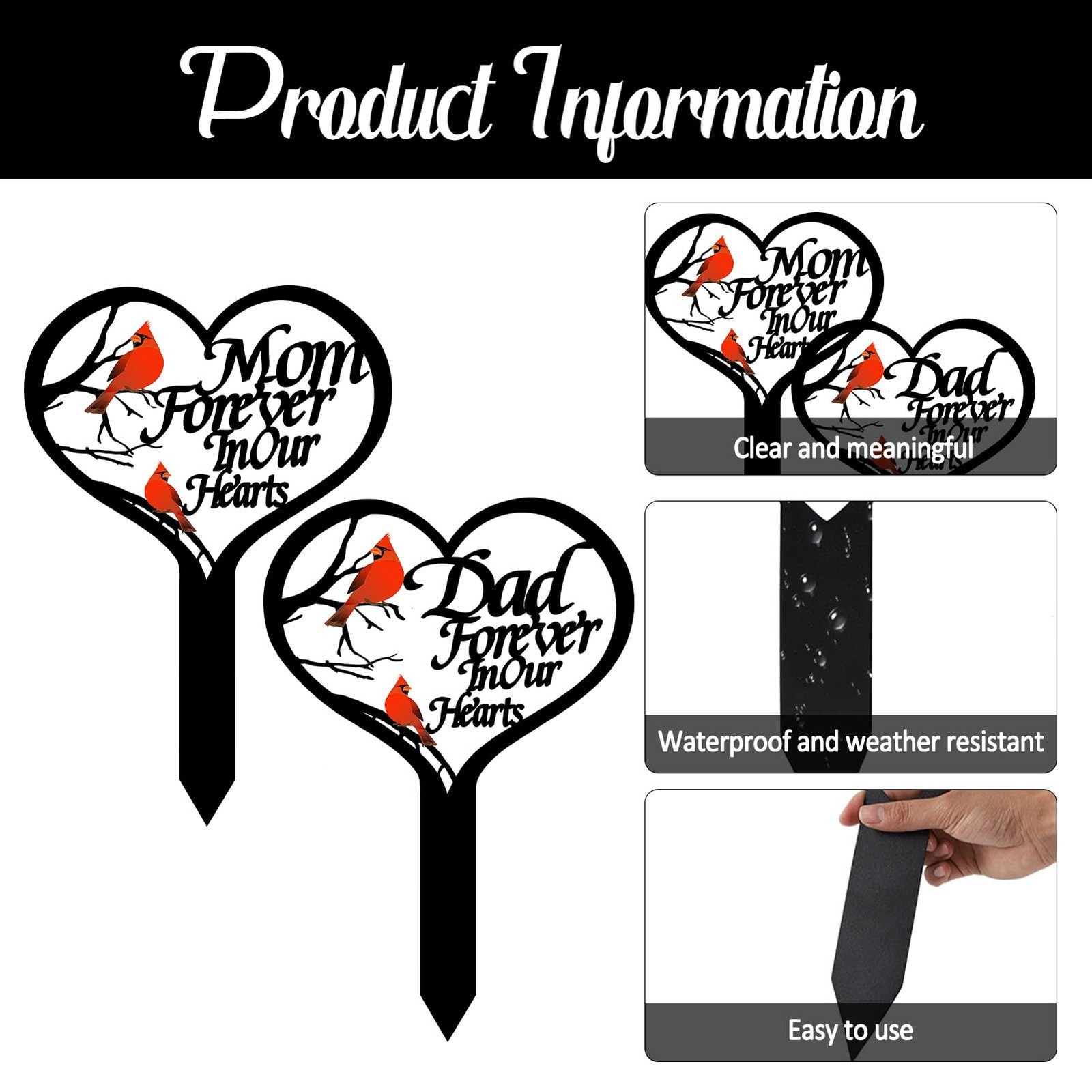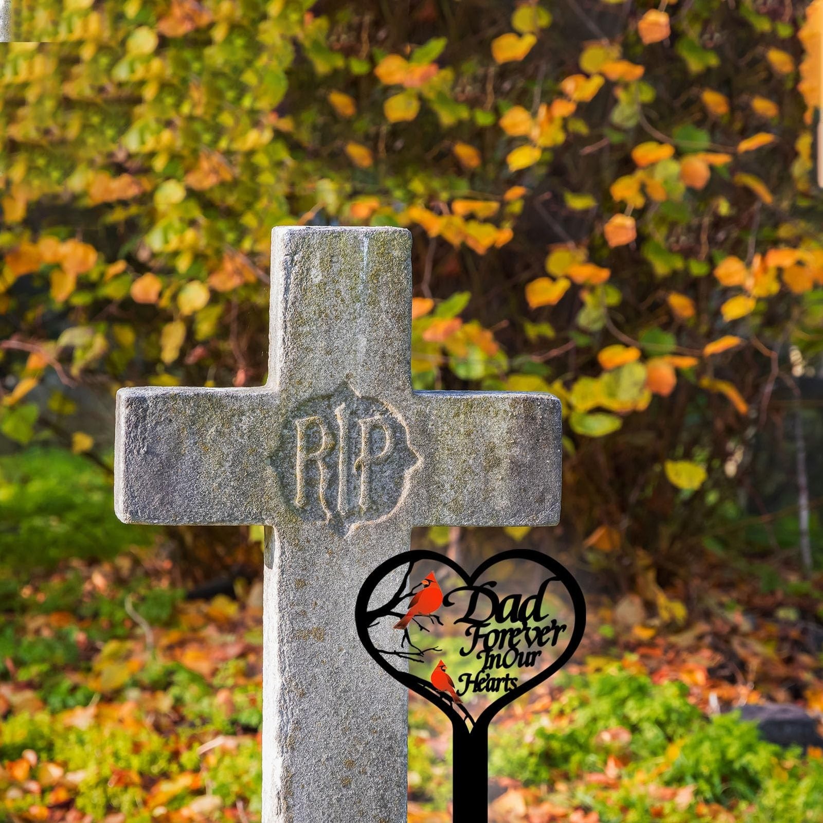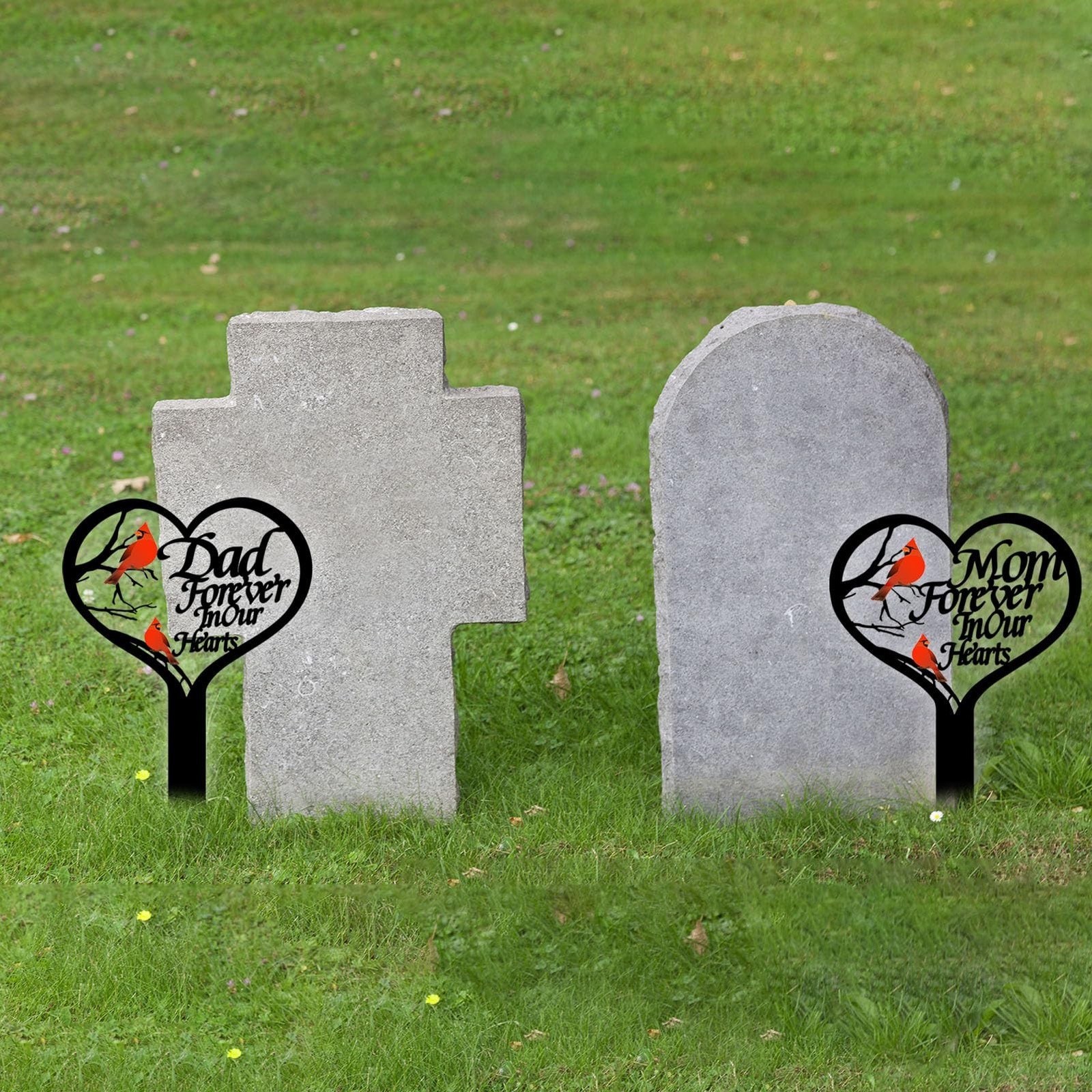 OZIO Memorial Grave Markers for Cemetery, Heart Memorial Plaque Stake Cardina...