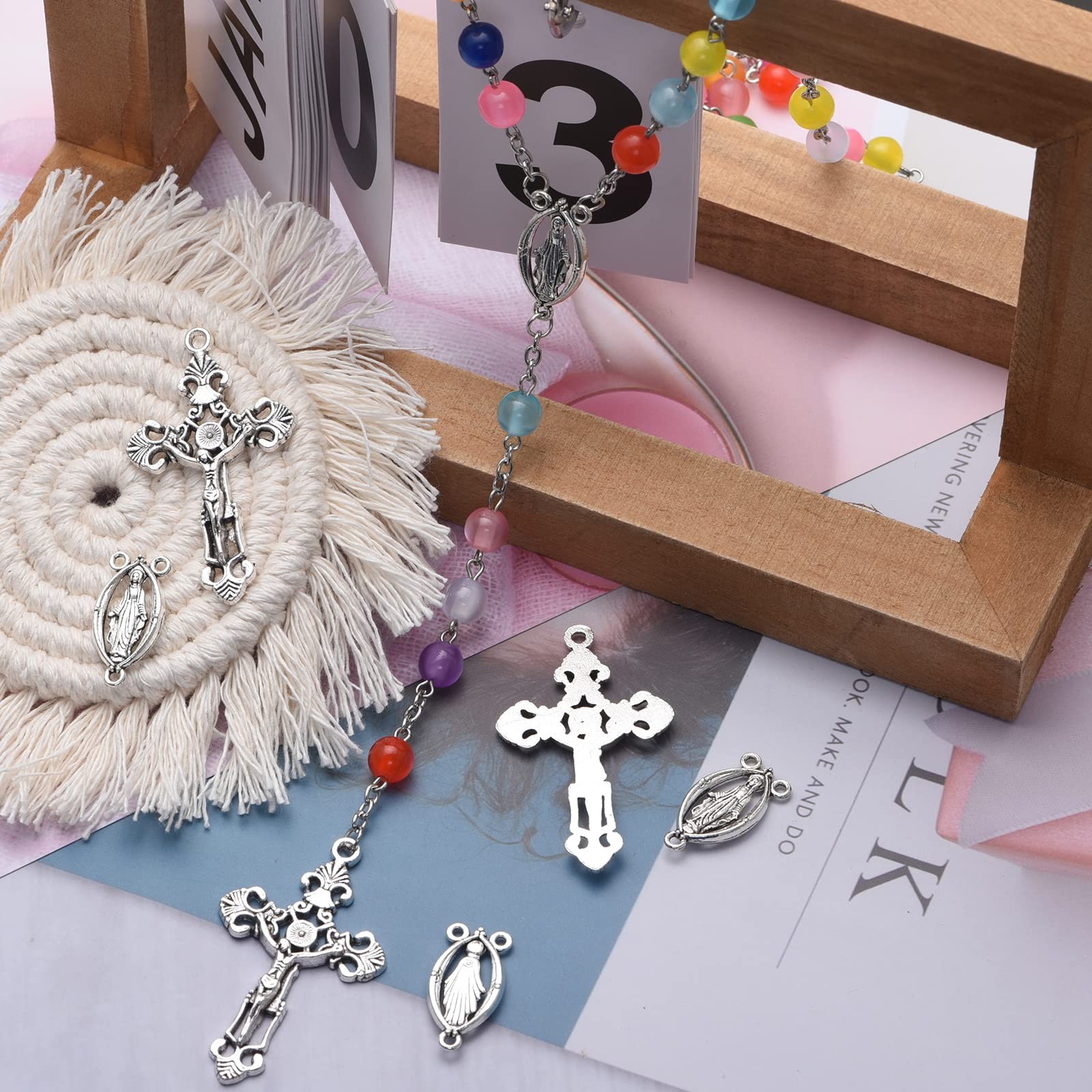 20Pcs Rosary Kits Cross and Center Medal Charms Tibetan Silver Alloy Catholic...