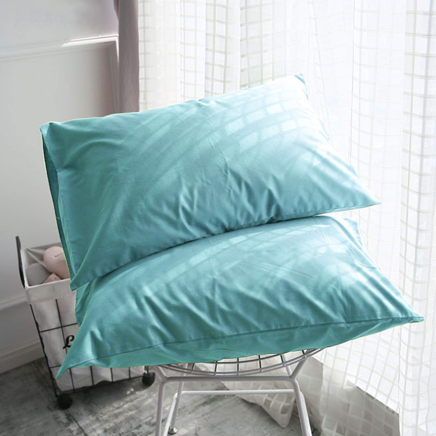 Microfiber Queen Pillow Covers, 2 Pack, Wrinkle Resistant, Blue