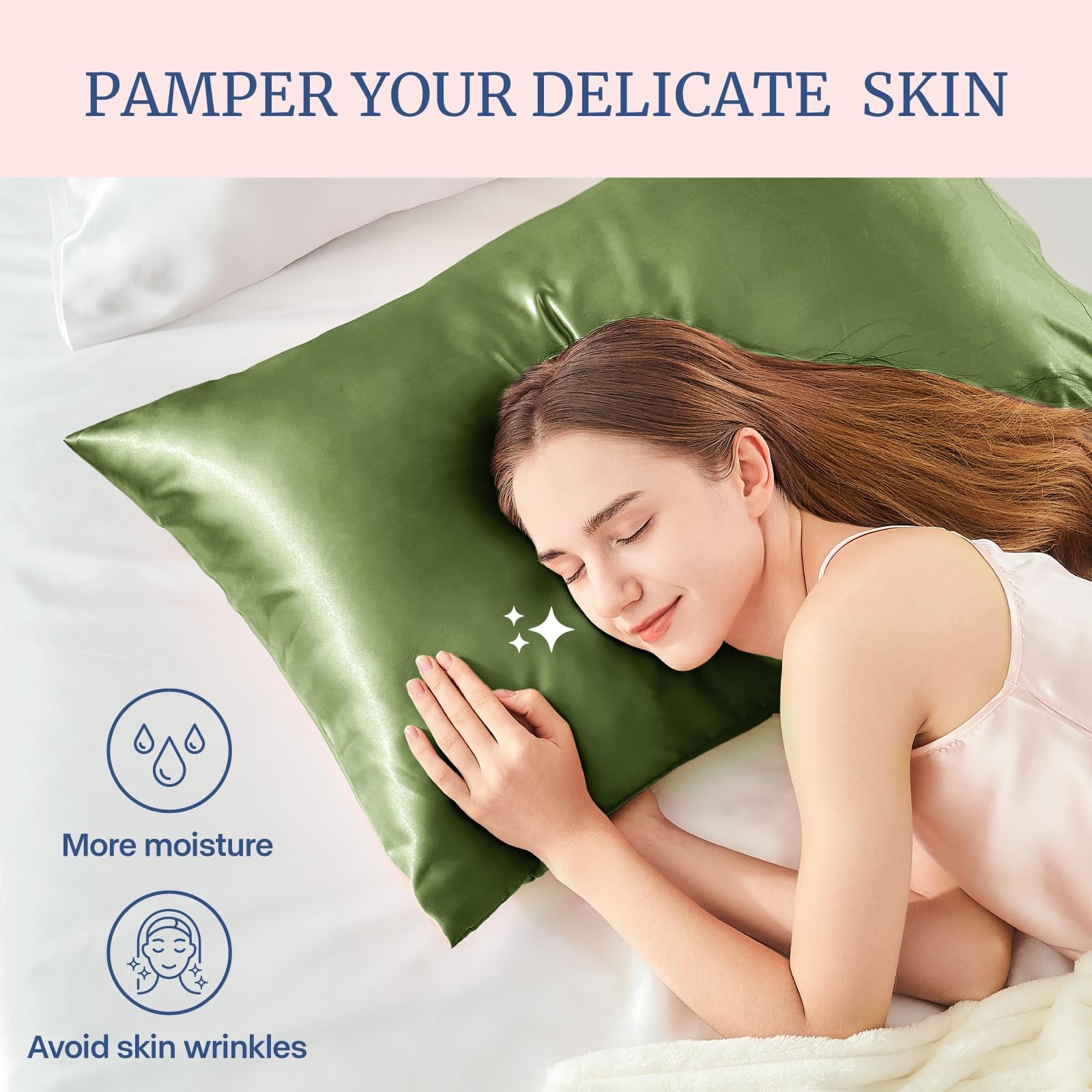 Breathable Satin Pillowcase, Smooth Hair Skin Protection, 2 Pack, Green