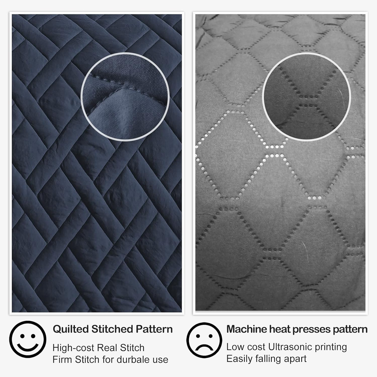 Quilt Set Queen Size Navy Blue, Classic Geometric Diamond Stitched Pattern, Ultr