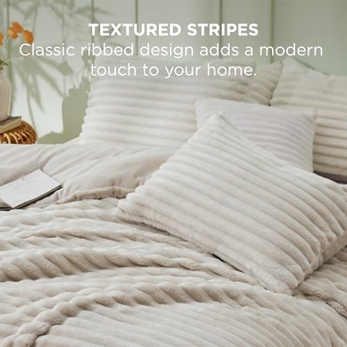Fluffy Comforter Set - Super Soft Faux Fur Bed Set Linen, Queen 02 - Linen