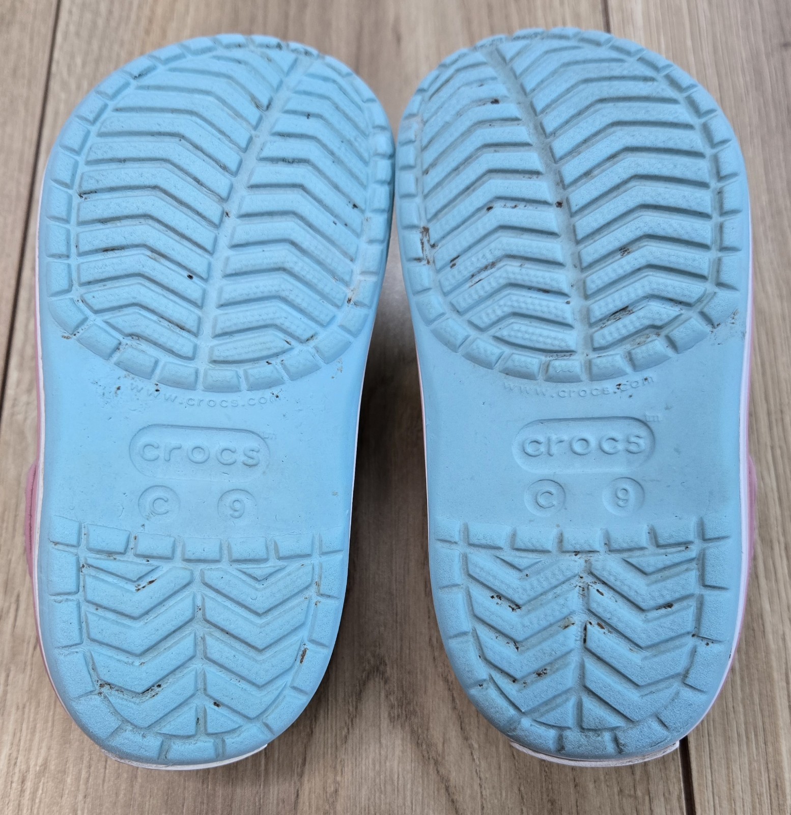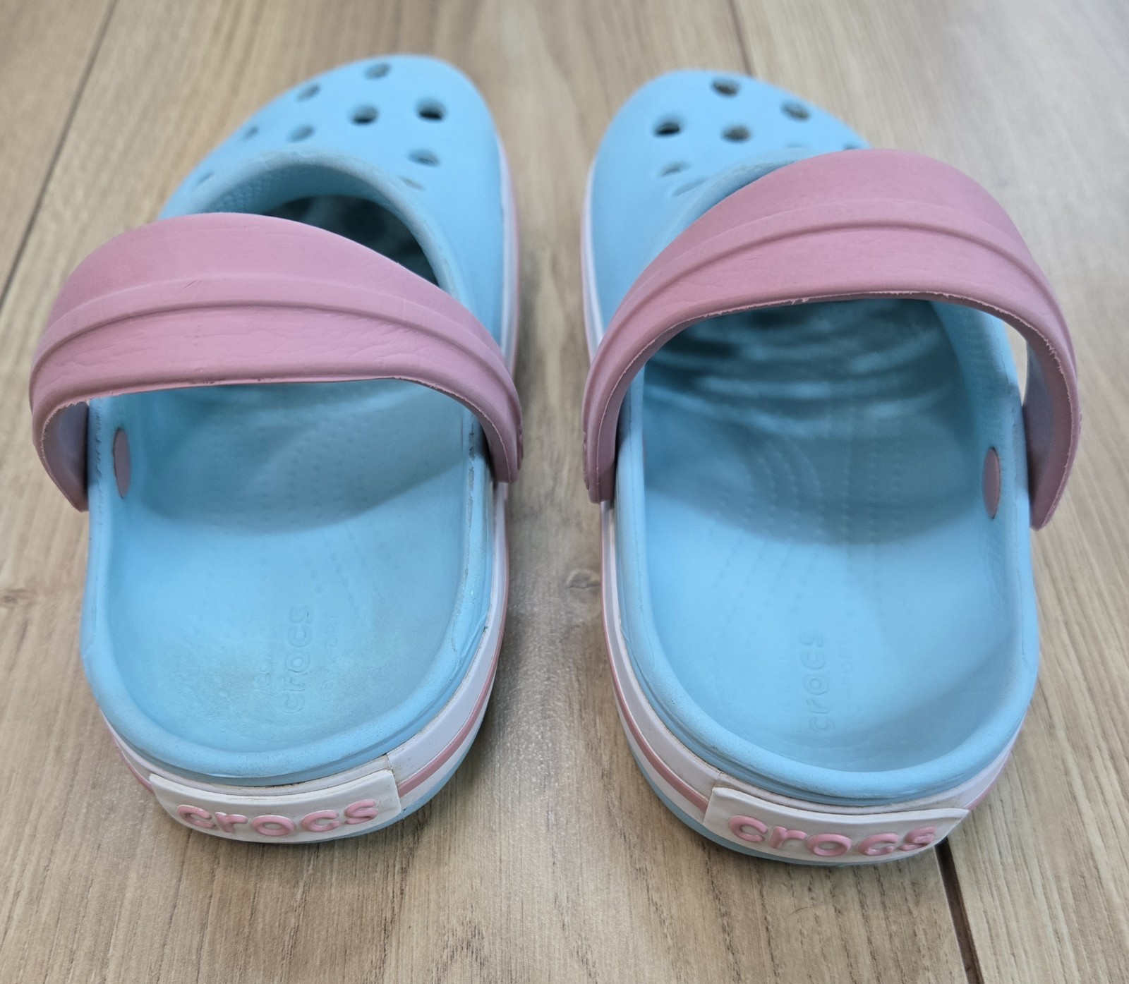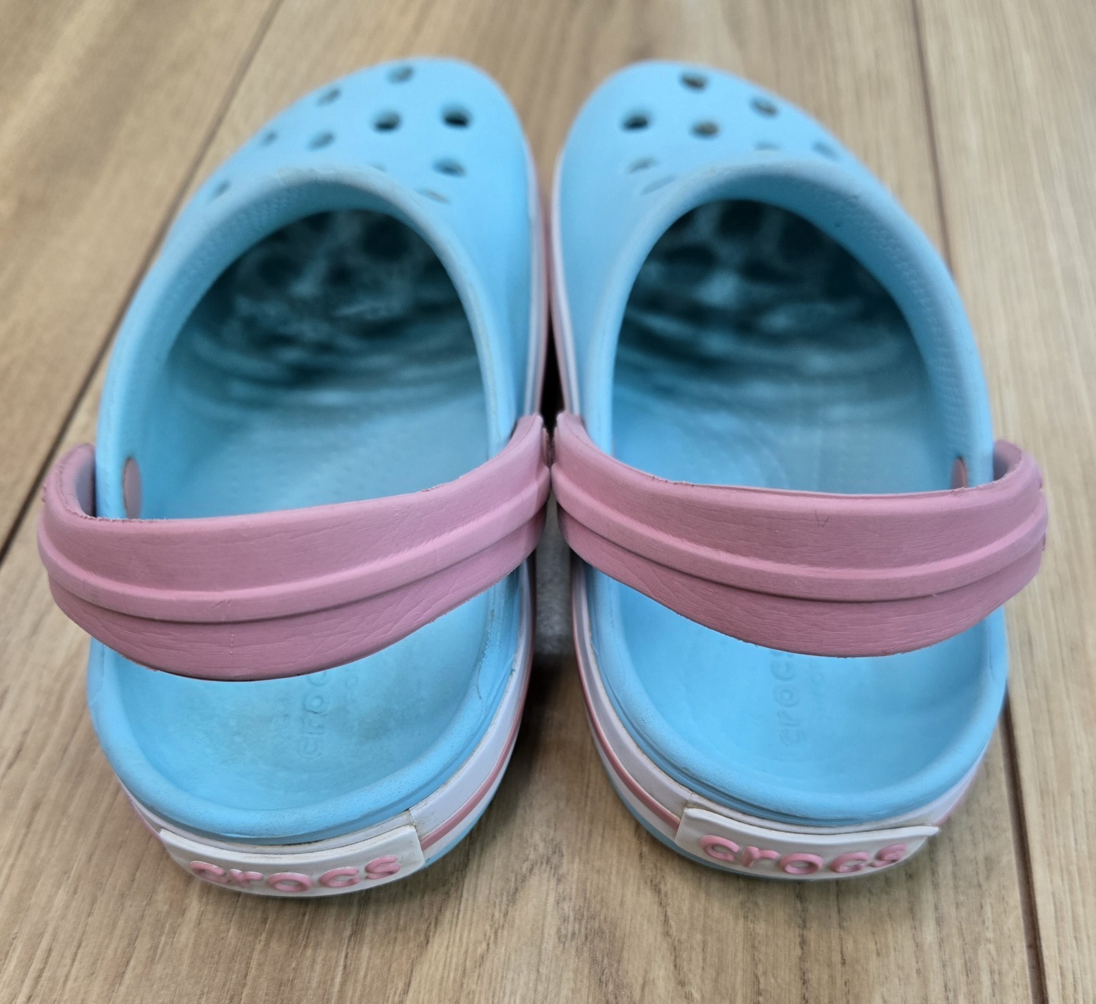 как выглядит Crocs Kids Bayband Slip-Ons Youth Sz C 9, Sky Blue/Pink, Great Condition фото