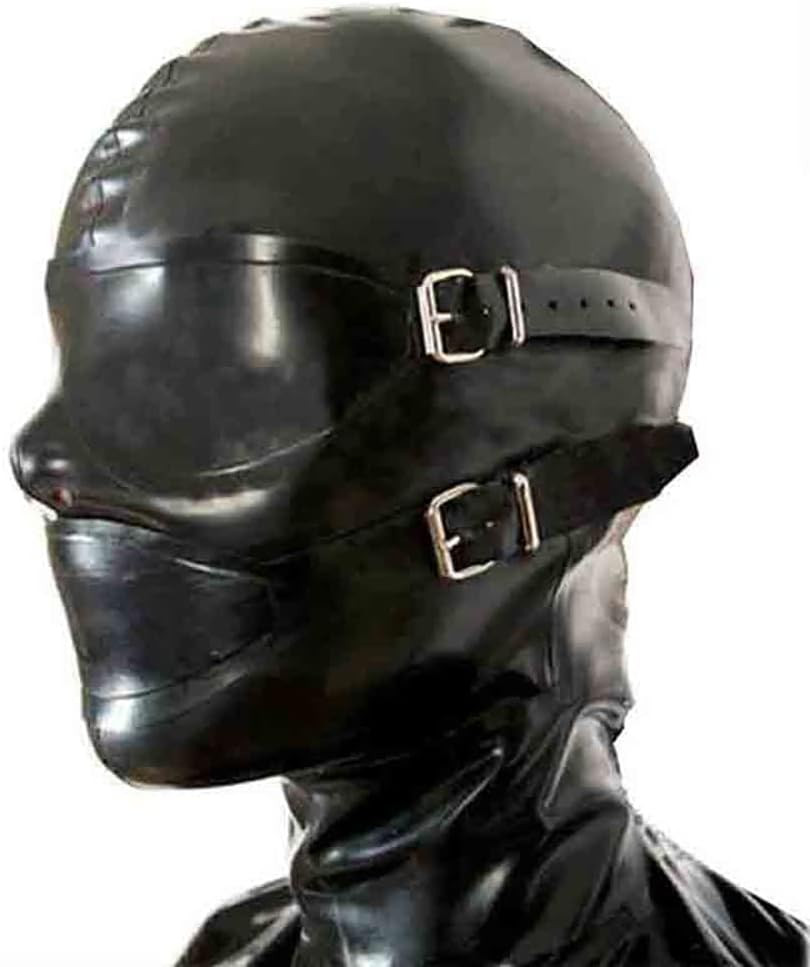 Hood with Removable Eyes and Mouth Mask Latex Rubber Open Eyes Back Zipper L