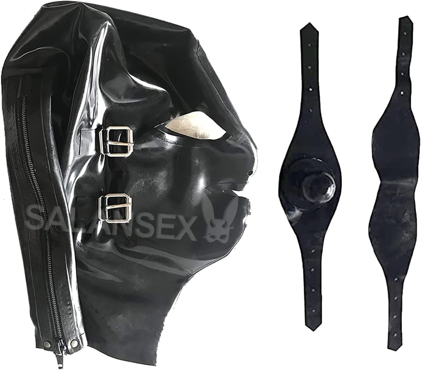 как выглядит Hood with Removable Eyes and Mouth Mask Latex Rubber Open Eyes Back Zipper L фото