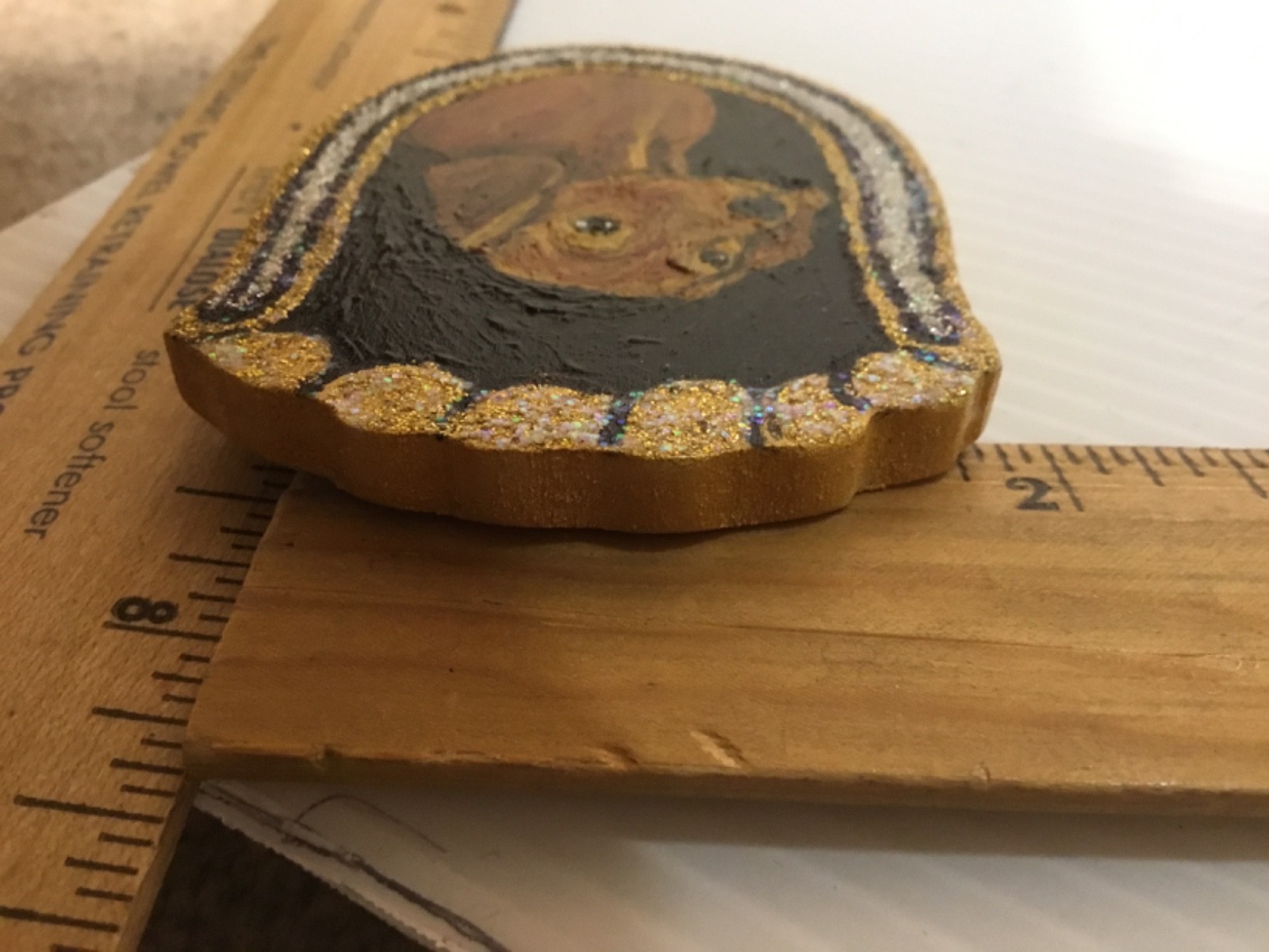 как выглядит Handmade Wooden Handpainted Sparkly RED DACHSCHUND Ornament/Magnet фото