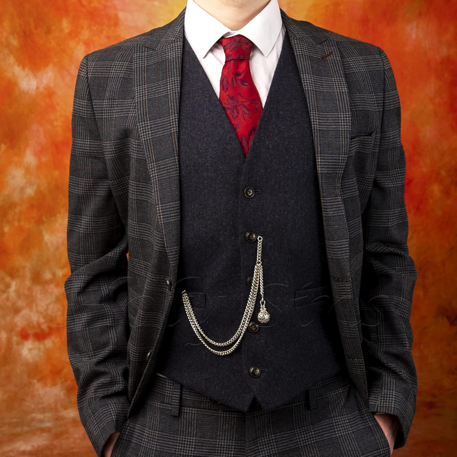 Handmade in the UK Silver Colour Single Albert Pocket Watch Chain with Pendant