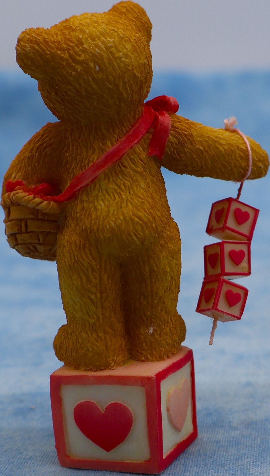 как выглядит Cherished Teddies Mini Bear With Heart Dangling Blocks Figurine 203084 With Box фото
