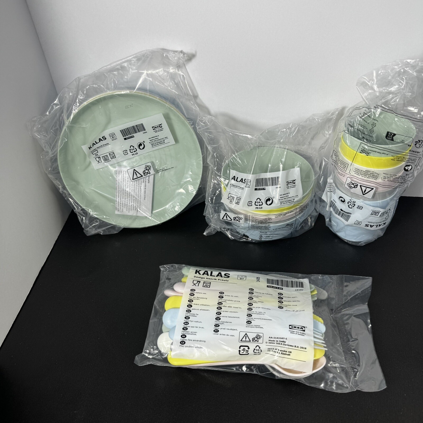 IKEA Kids Toddler Plastic Dinnerware 36-piece Set Cups Plates Bowls Spoon Forks