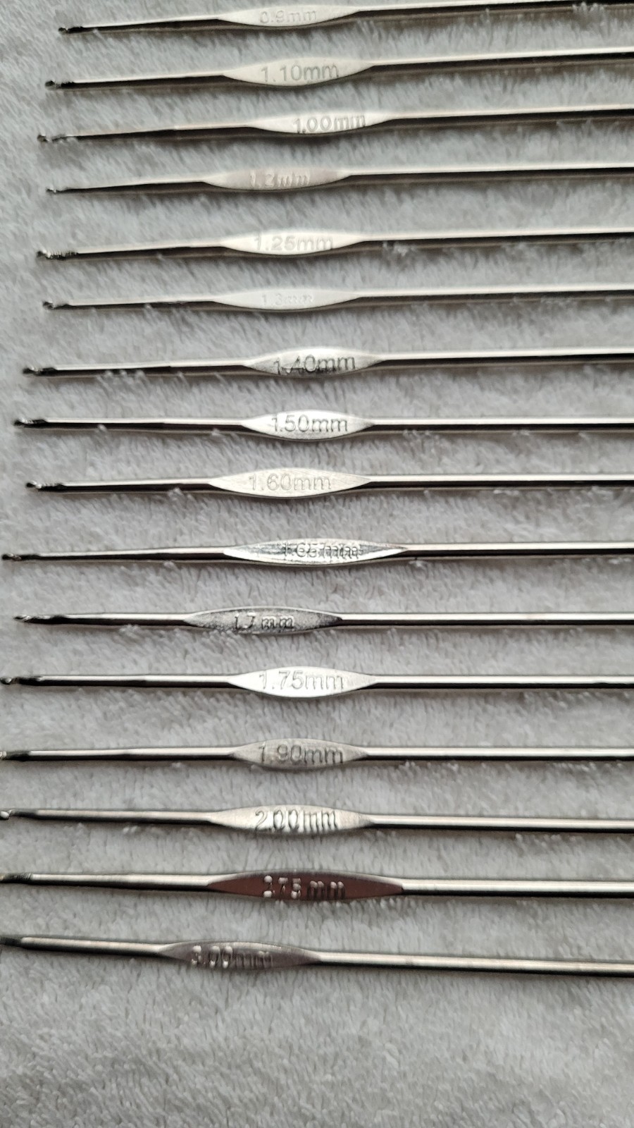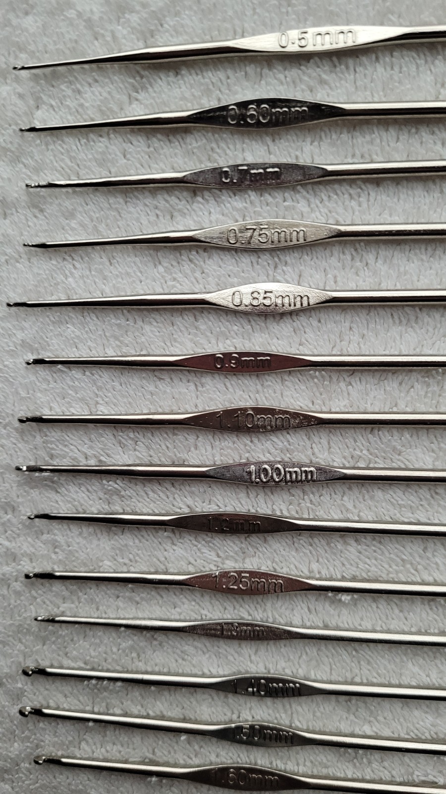 Preowned Set of 21 Millimeter Sized Thread Crochet Hooks 3.00 mm to 0.5mm