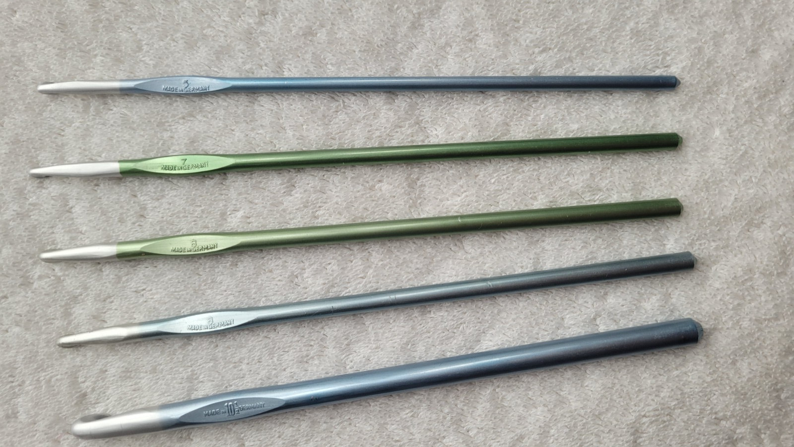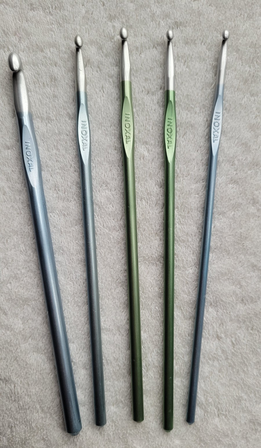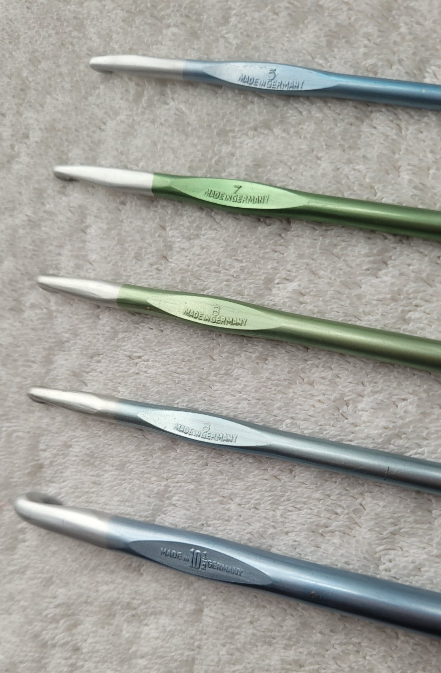Preowned Set of 5 Inoxal Made in Germany Crochet Hooks Sizes 10.5, 8, 8, 7, 5