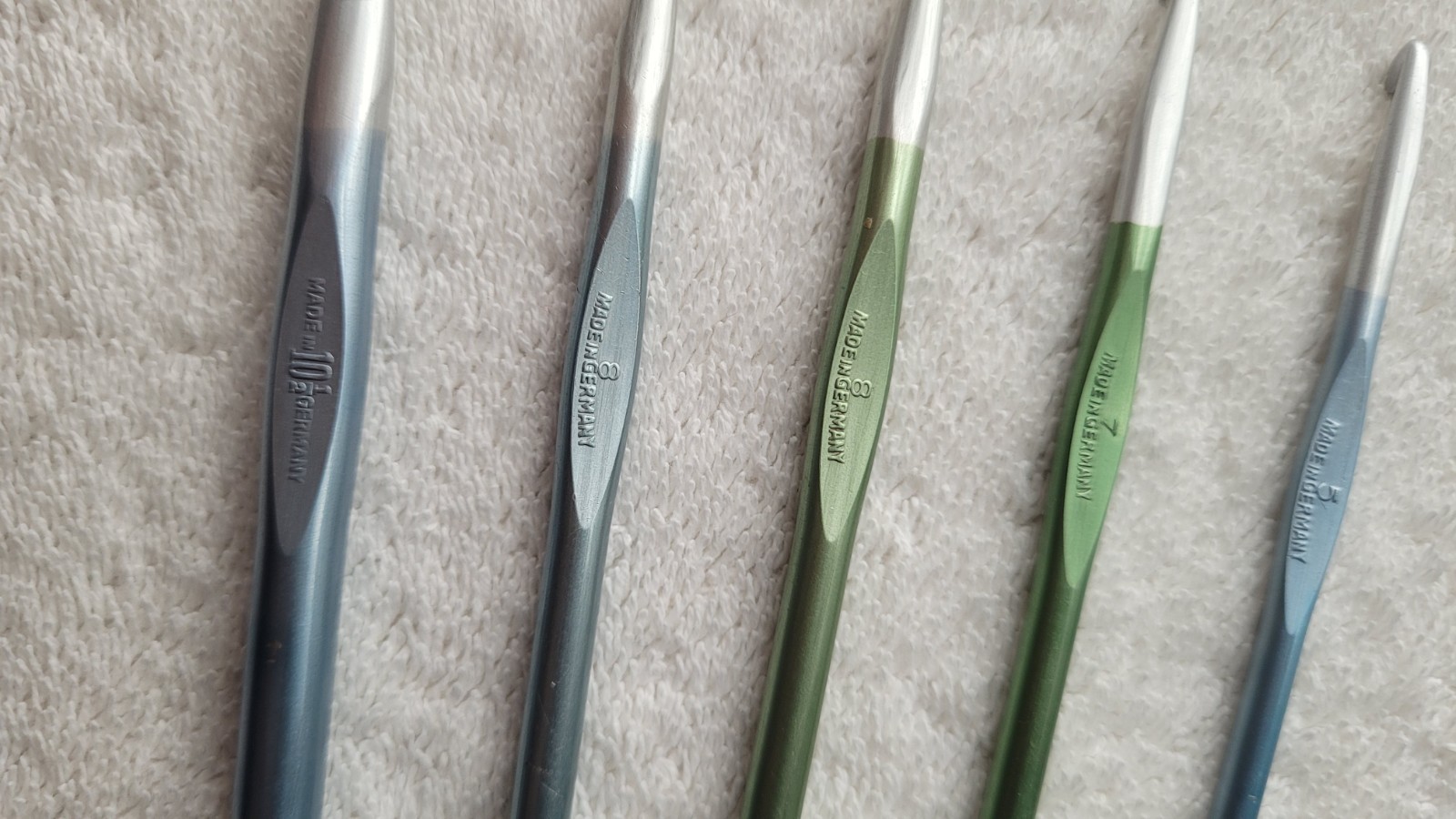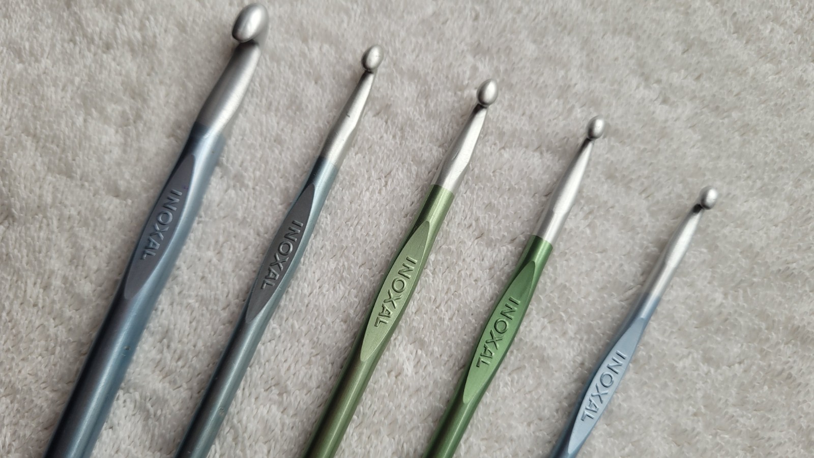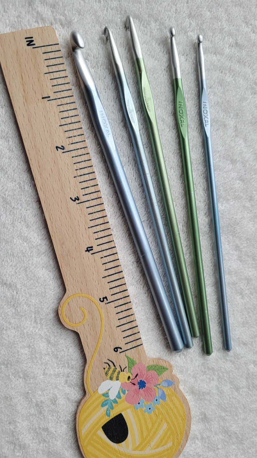 Preowned Set of 5 Inoxal Made in Germany Crochet Hooks Sizes 10.5, 8, 8, 7, 5
