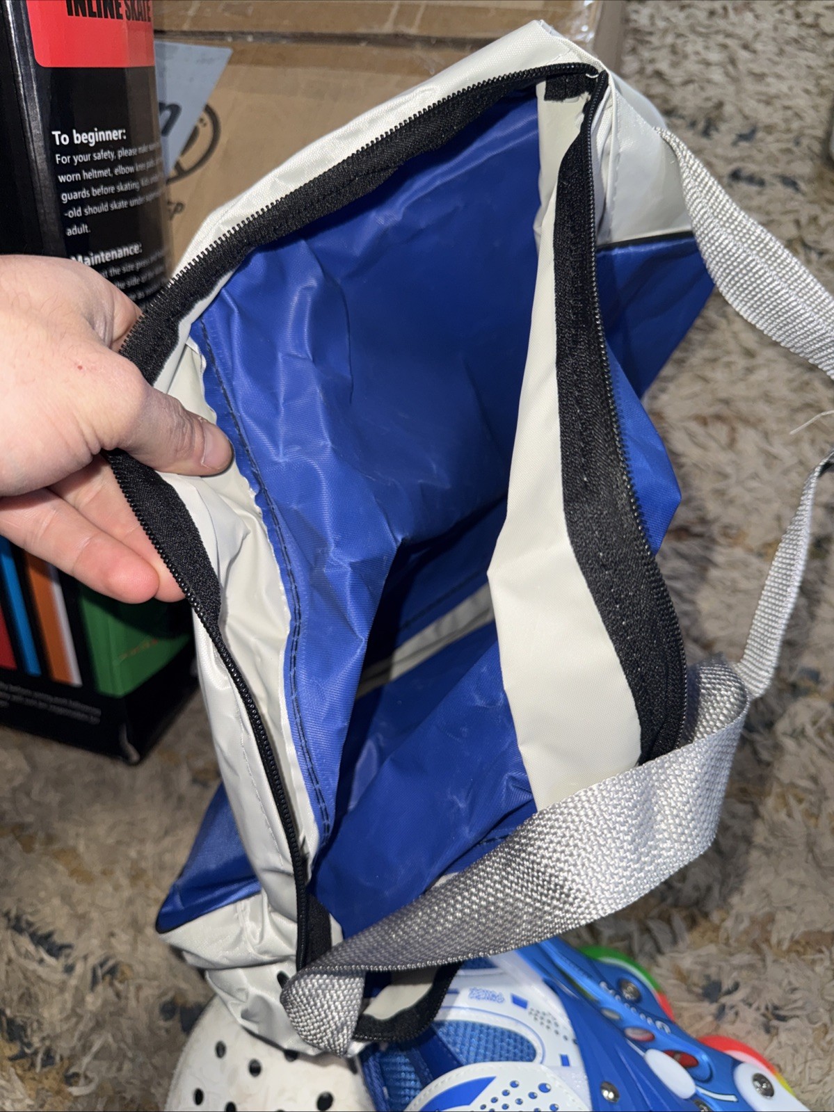 как выглядит Kids Adjustable Inline Skates Size Medium  Light Up Wheels  Blue/White фото