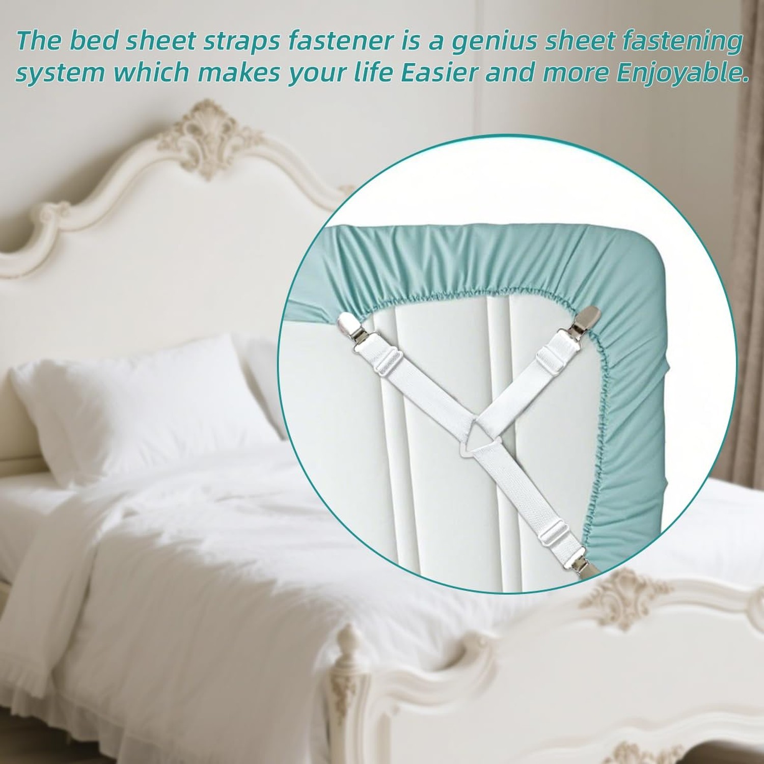 Bed Sheet Retainer Straps,Elasticated Adjustable Mattress Fitted Sheet Clips,...