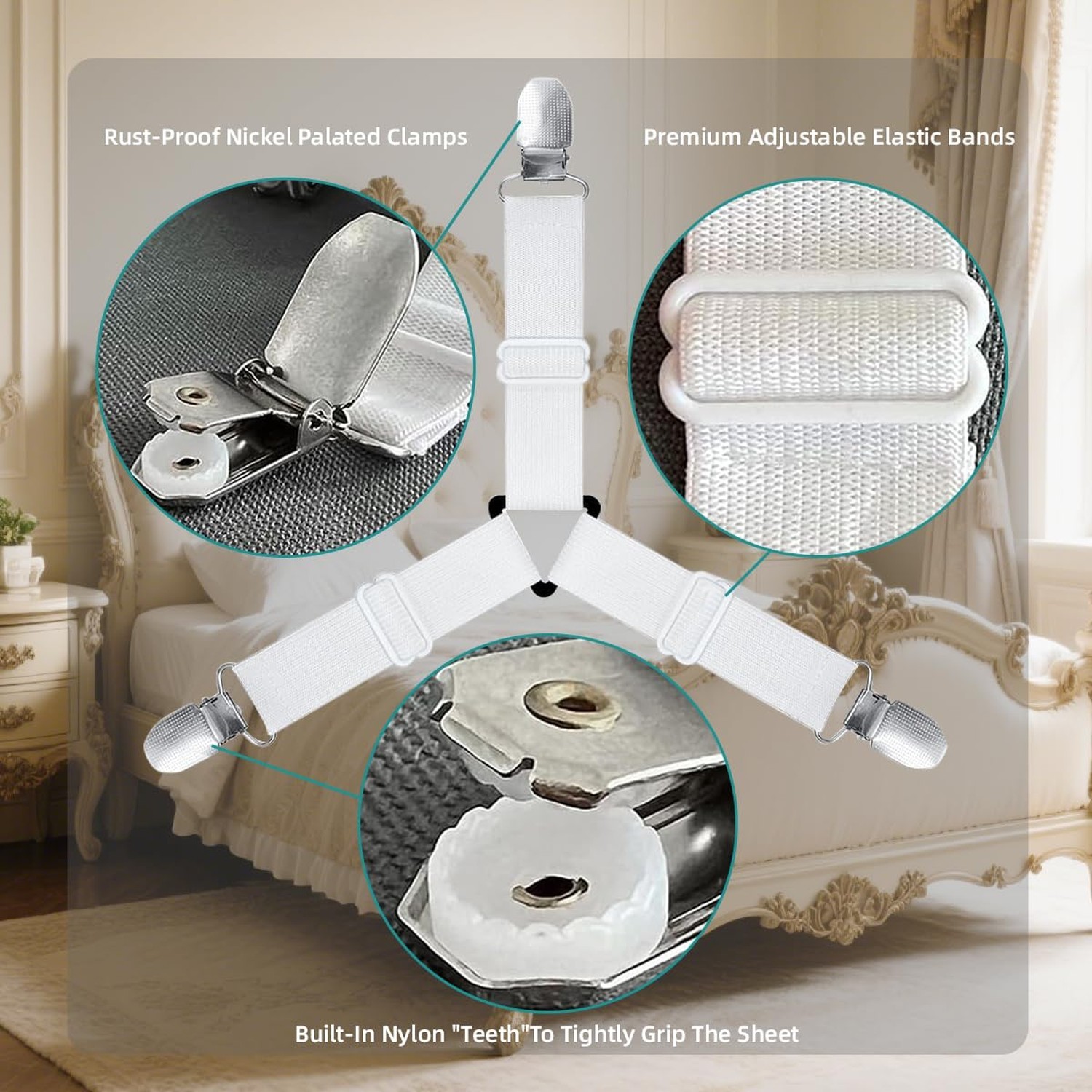 как выглядит Bed Sheet Retainer Straps,Elasticated Adjustable Mattress Fitted Sheet Clips,... фото