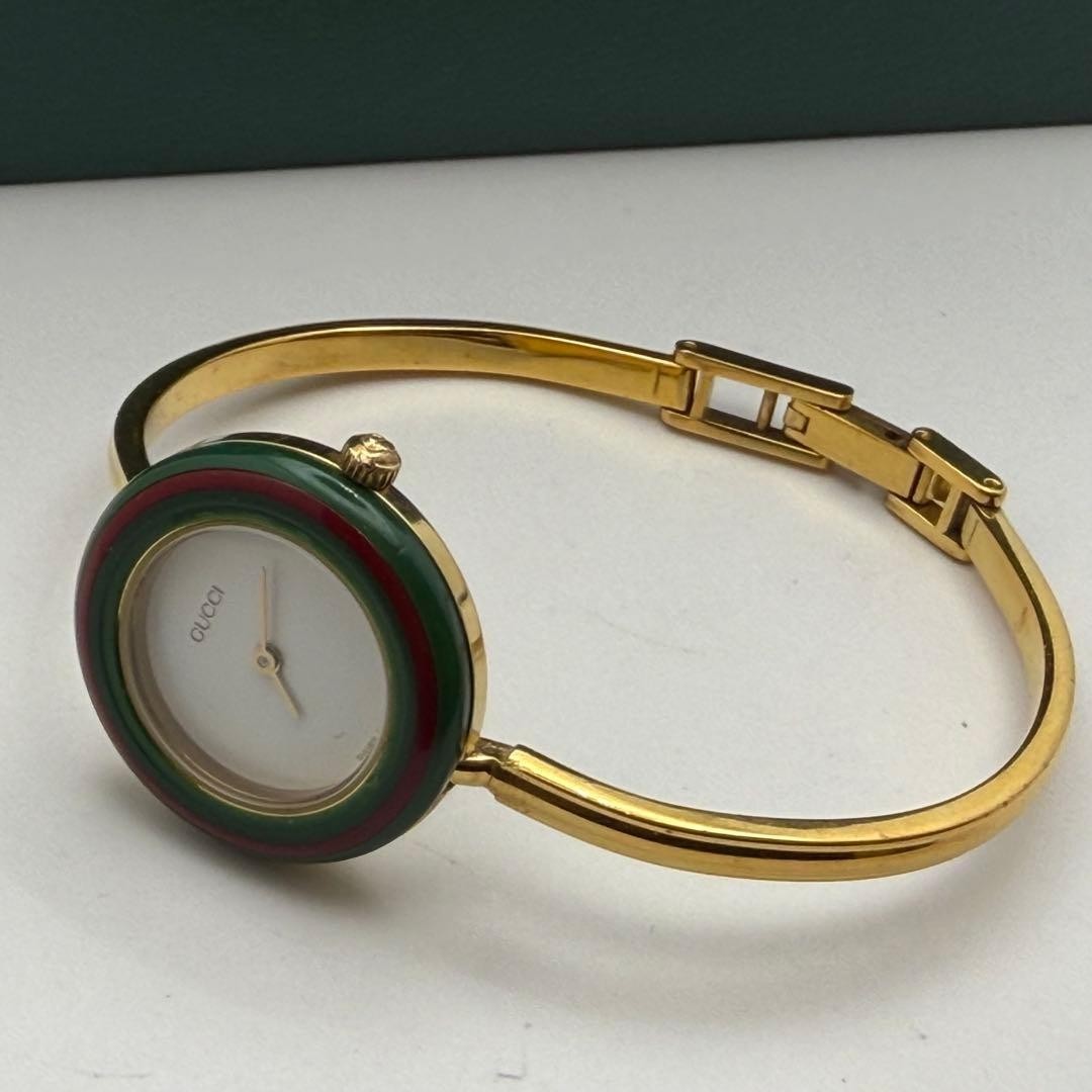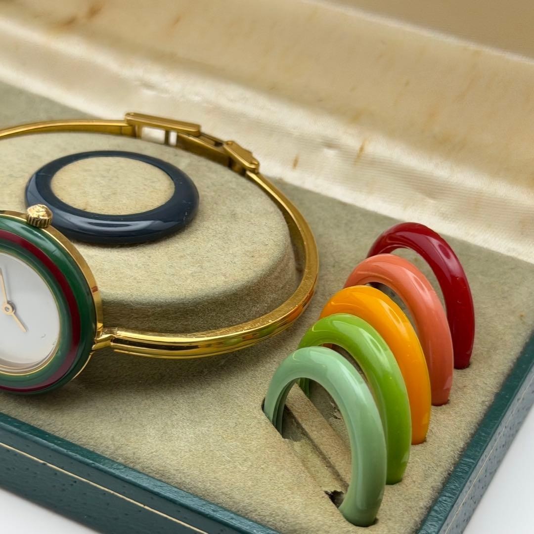 как выглядит GUCCI Change Bezel 12 Colors Gold Watch M Size Working Beautiful фото
