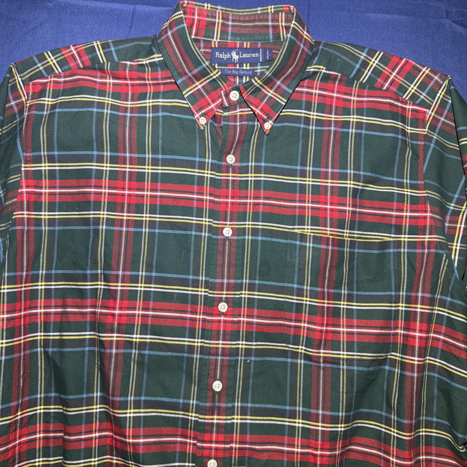 Vintage Polo Ralph Lauren The Big Oxford Plaid Button Down Shirt Large Red Green