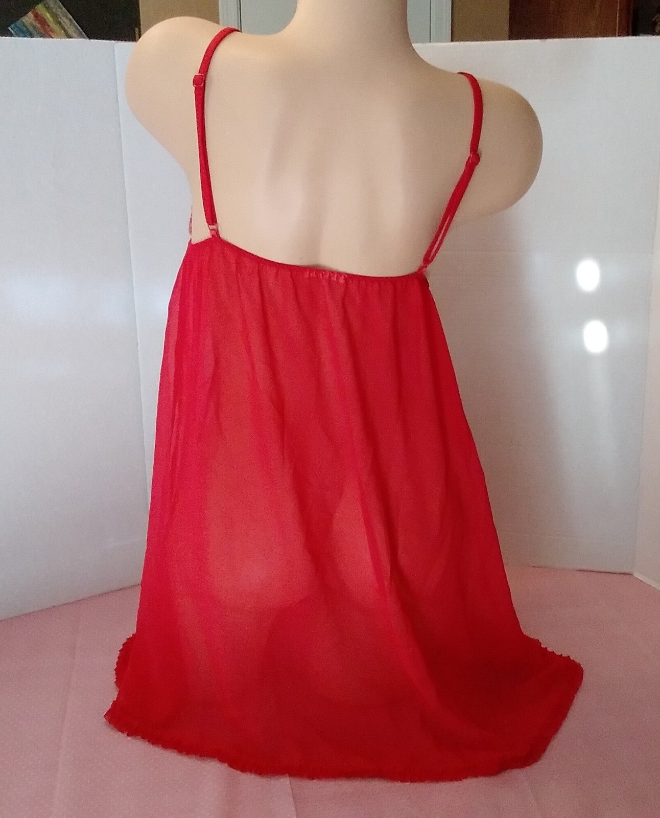 как выглядит Vintage 70s Red Ruffle Bodice Short Babydoll Nightie M-L from Europe фото