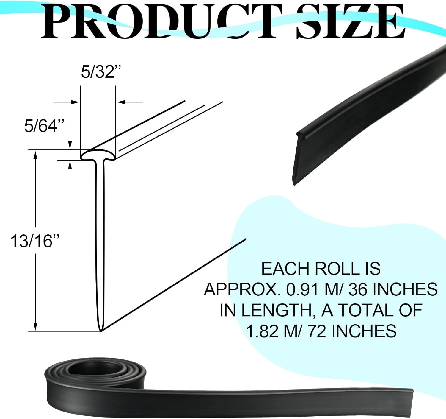 72 Inch Black Shower Door Bottom Seal Shower Door Seal Strip Waterproof Trim for